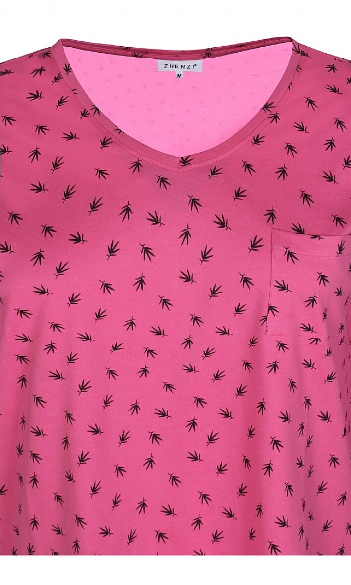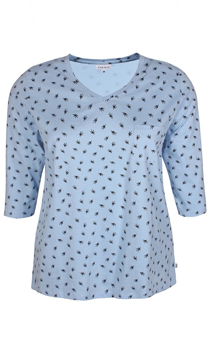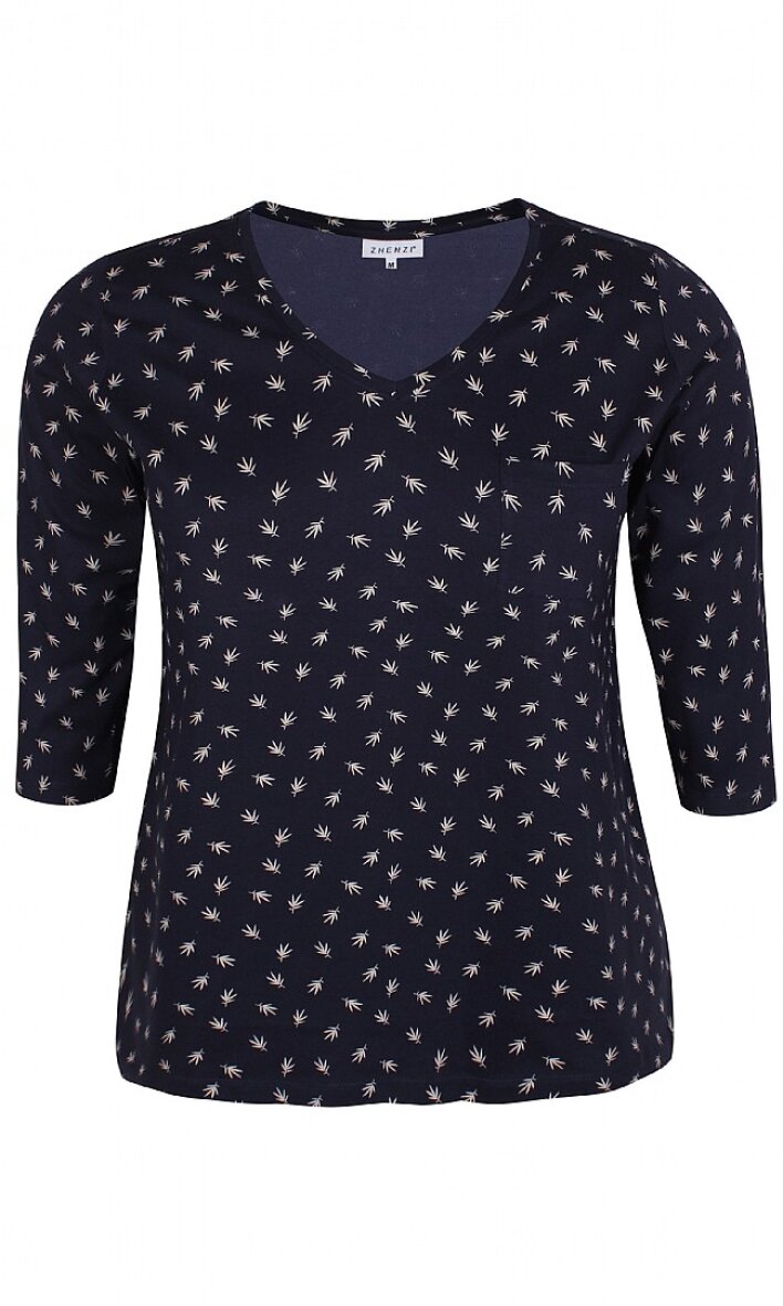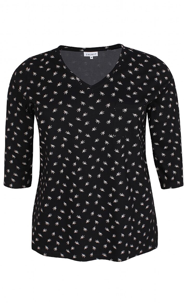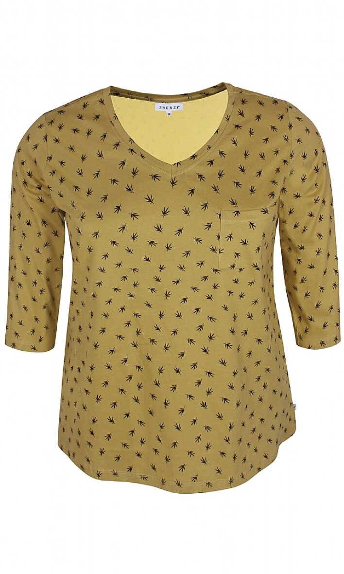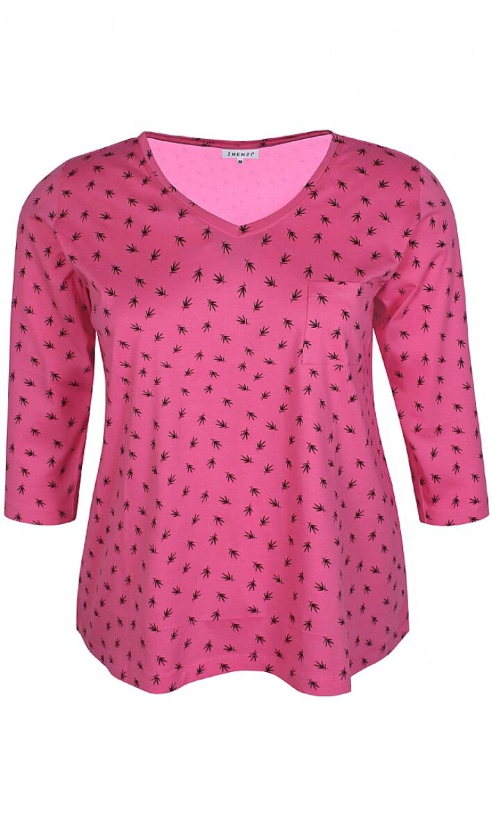 Blød og åndbar t-shirt i 100% bomuld fra Zhenzi. Med print og 1 brystlomme. V-hals og 3/4 ærmer. A-facon. Fås i 5 forskellige farver.
