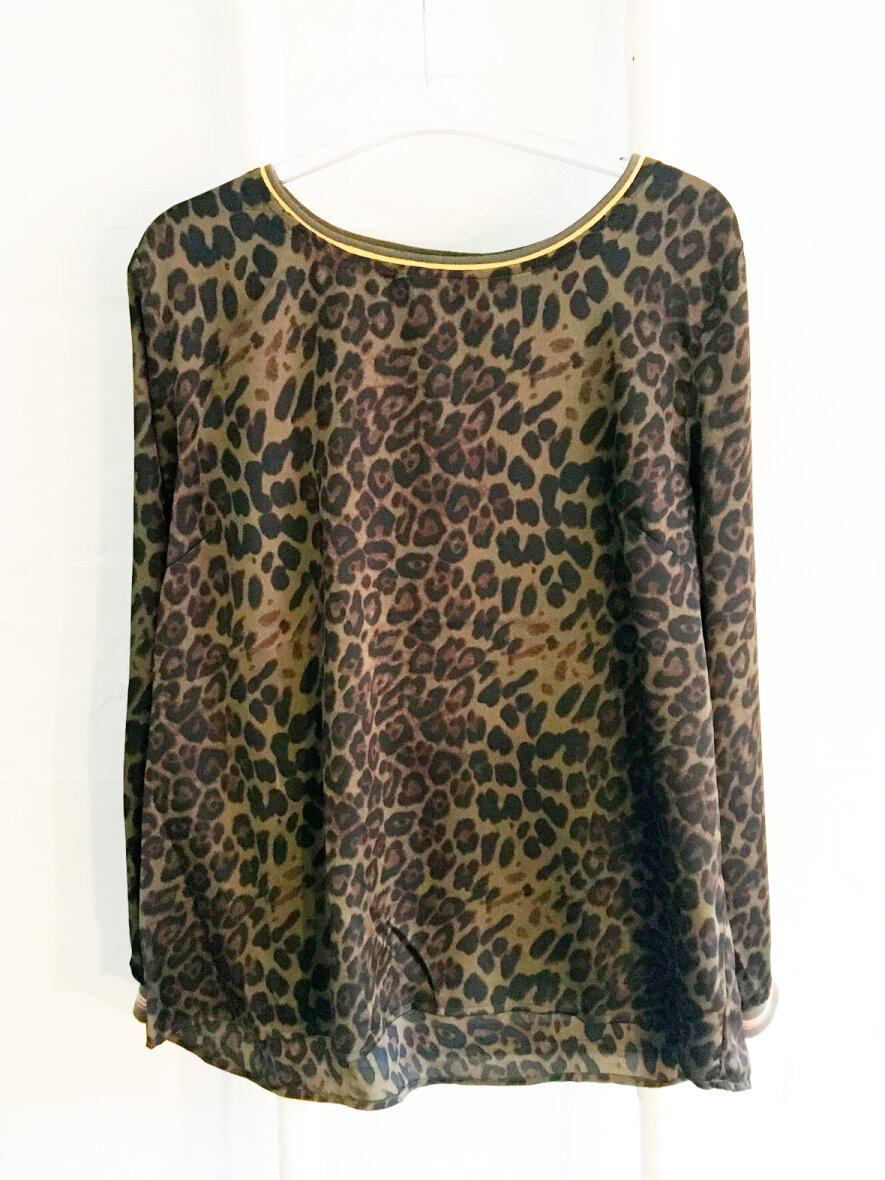 Den lækreste Soulmate bluse i et flot, grønt leopard print. Blusen har lange ærmer og rund halsudskæring med elastik ribkanter.
