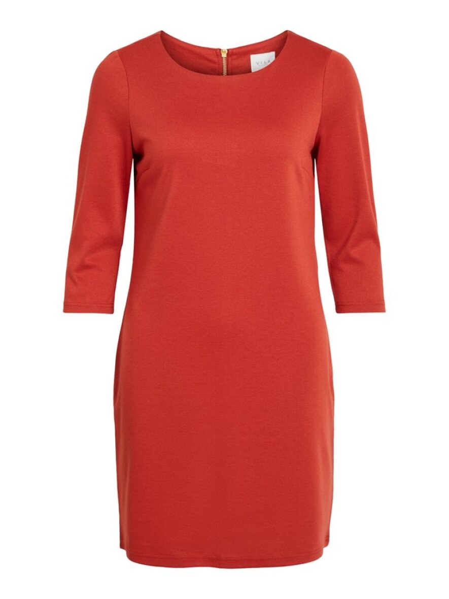 Enkel kjole med 3/4 ærmer og lynlås i ryggen. Kjolens materiale er med stræk og rigtig dejlig at have på. Rund halsudskæring.