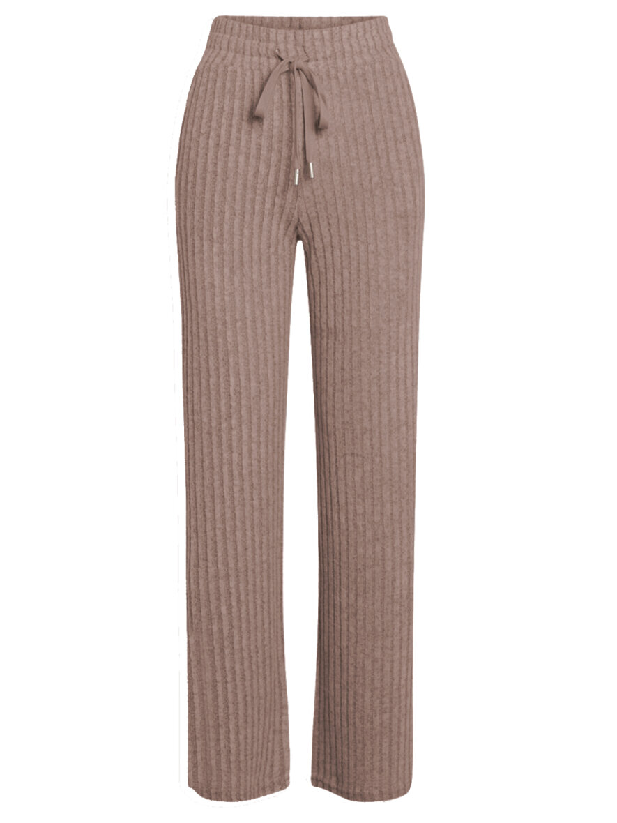 Super bløde og lækre ribstrikket lounge wear bukser fra Sisters Point. Loose fit. Bred elastikkant med snøre i taljen.