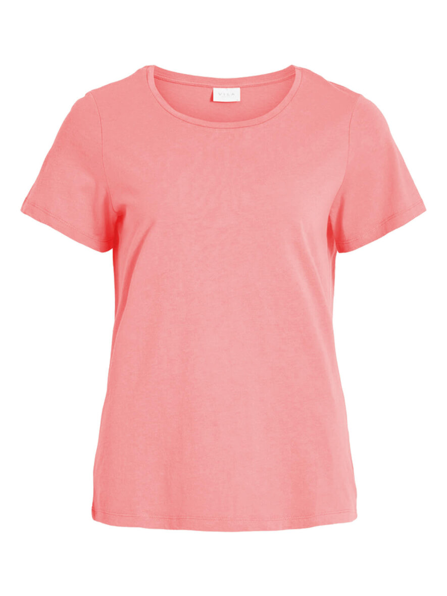 Enkelt T-shirt med O-hals og små korte ærmer fra VILA i farven "Wild Rose".