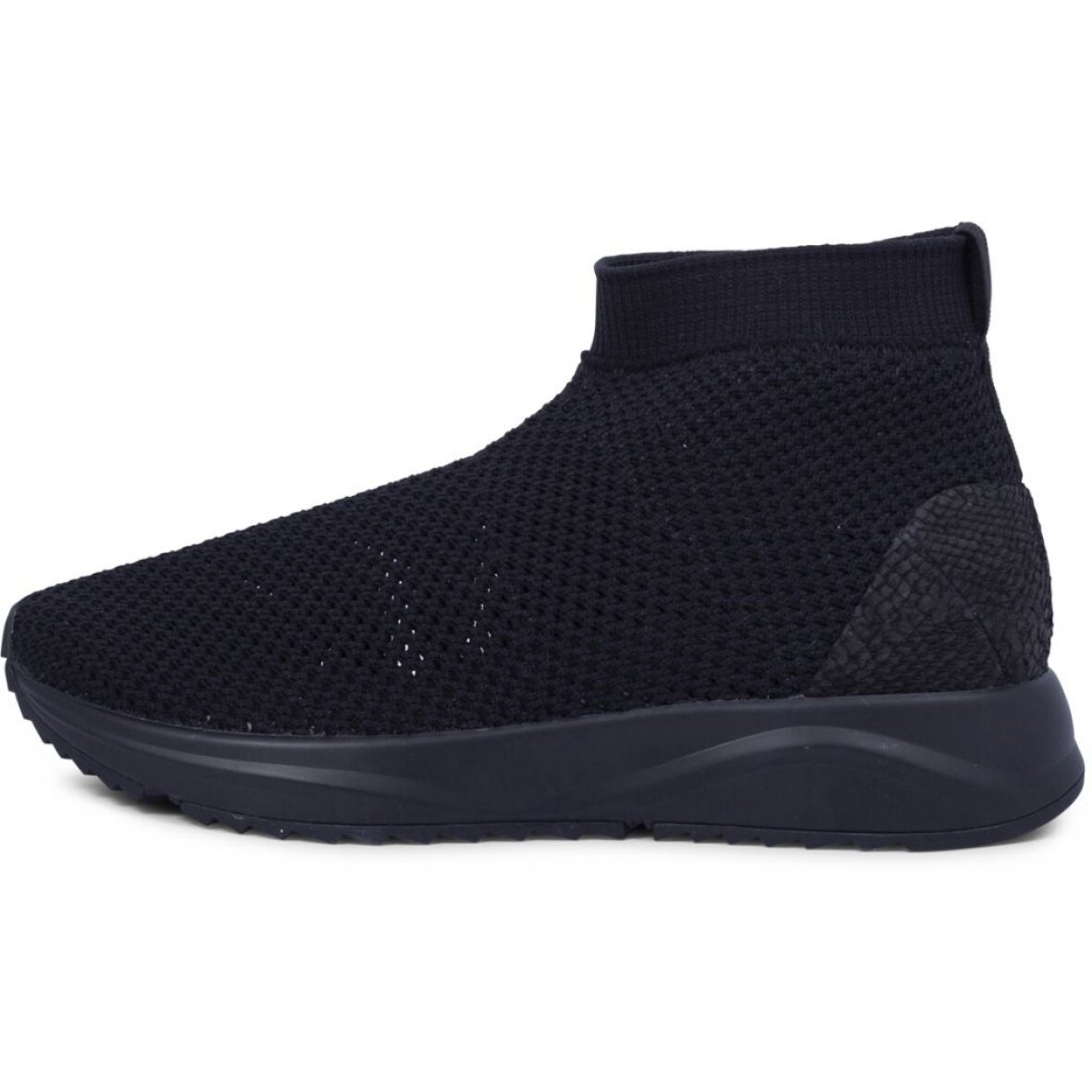 Smarte sko fra Woden i sort hullet mesh tekstil. Skoen har fine detaljer med fiskeskind bagpå og stretch i stoffet, så skoen sidder godt på foden. Indlægssålen er en udtagelig stødabsorberende kork sål og ydersålen er lavet af naturgummi.