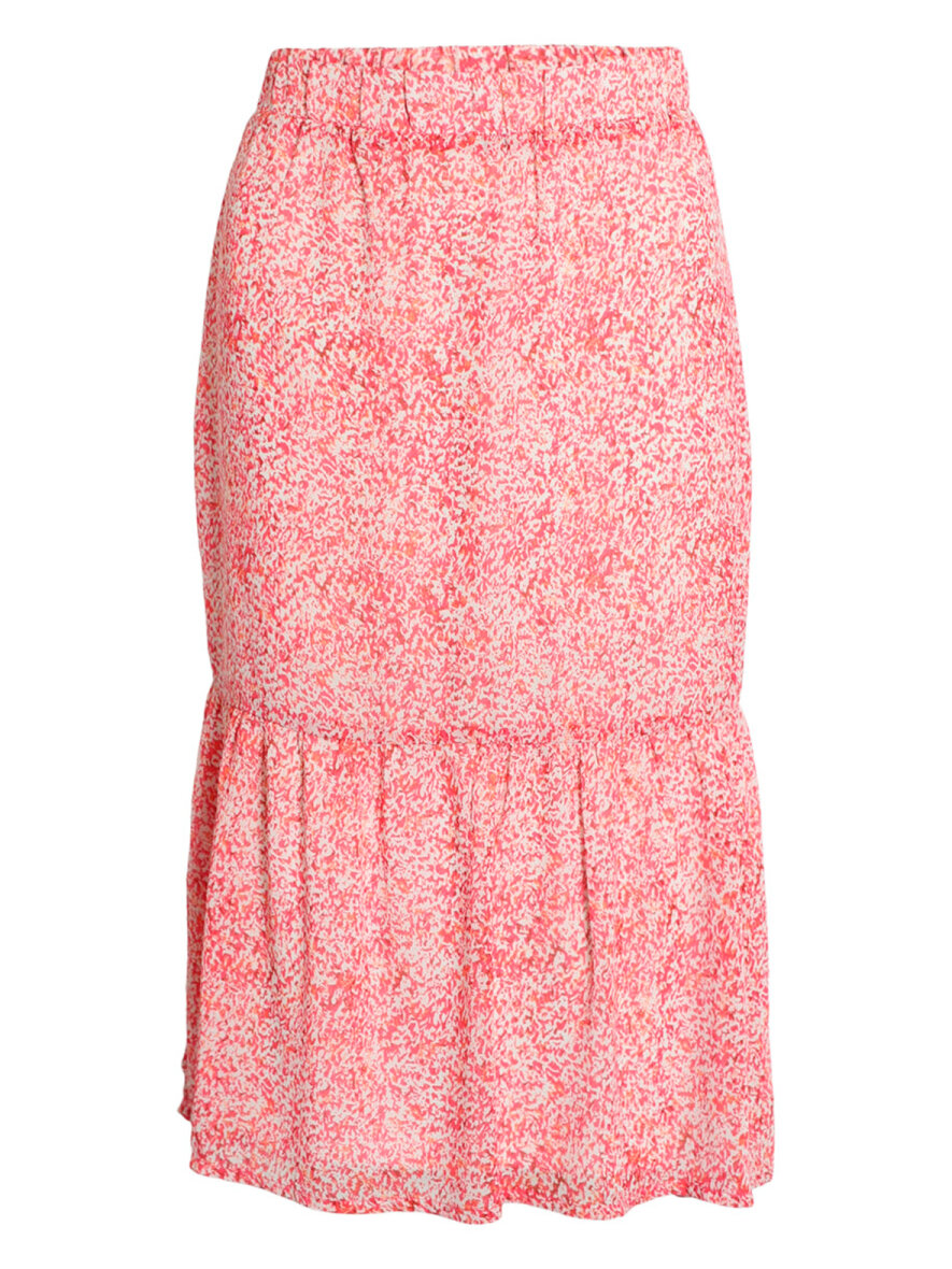 Smuk lang nederdel fra Signature. Nederdelen er designet i et flot mønstret print og har elastik i taljen. Den kan både bruges til hverdag og til fest. Påsyet underskørt. Nederdelen er en smule længere bagtil.