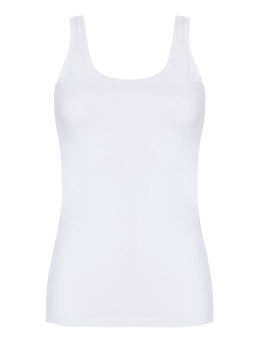 Basis Bomuld tank top med brede stropper fra Femilet. Enkelt design der gør den oplagt som hverdagsundertrøje under tøjet. Produceret i blødt bomuldsmateriale, der er fintstrikket, komfortabelt og holdbart.