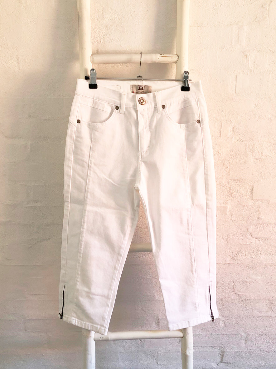 Fede piratbukser fra Bessie Jeans med lommer foran og bagpå. Lynlås og knapluk. Lille lynlås ved læggen. Masser af stretch.