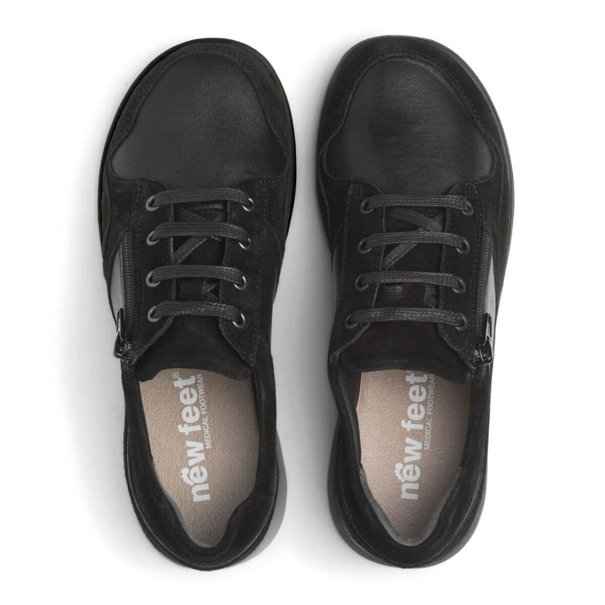 New Feet bruger mange forskellig læster og ydersåler med forskellige egenskaber, for at opnå en alsidighed i funktion og pasform. SLIM, MEDIUM og WIDE er de tre læstegrupper der findes i sortimentet, hvor SLIM er den slankeste læstegruppe og WIDE er den bredeste.Bemærk at dette er en vejledende størrelsesguide, som er overordnet for brandets fodtøj. Ønsker du helst specifikke størrelser på den individuelle sko er du velkommen til at kontakte os.