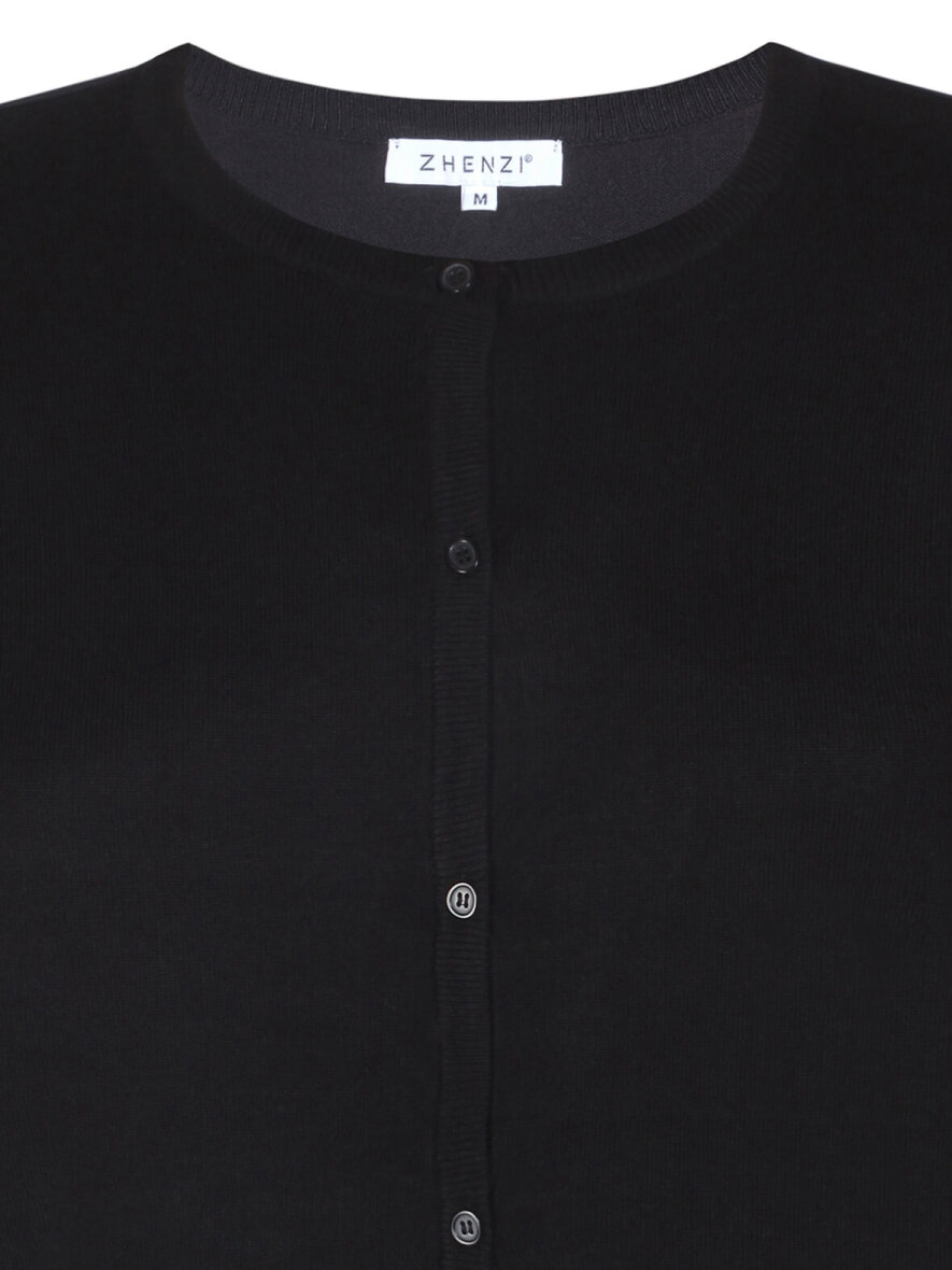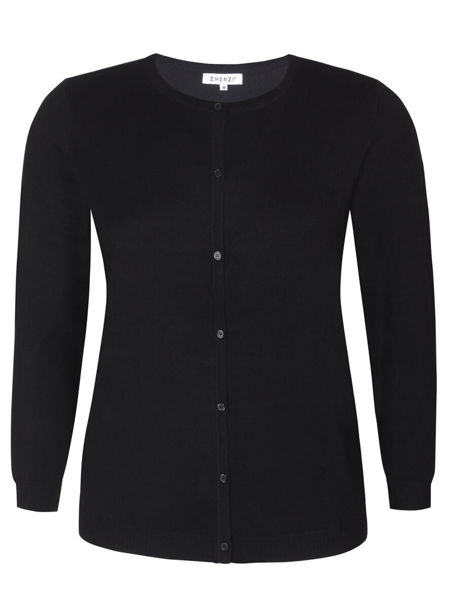 Klassisk cardigan i blød viskose-kvalitet fra Zhenzi. Lange ærmer og rund halsudskæring. Knapper ned foran. Lille ribkant på ærmer og i bunden.