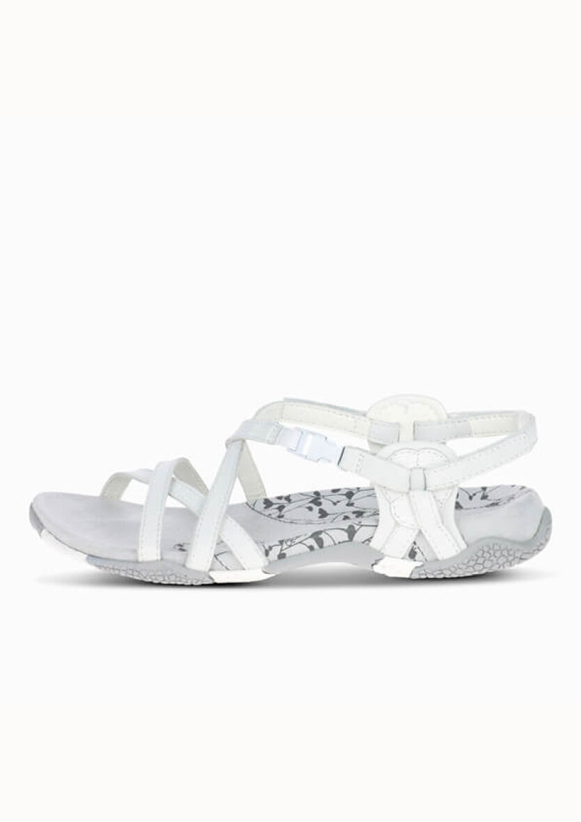 Skøn San Remo sandal fra Merrell. Remmene er justerbare med velcro i hælen og over vristen. Derudover kan hælremmen tages af, så du også kan bruge sandalen som en tøffel. Sålkonstruktionen er lavet over en Q-Form® læst, som er designet specifikt til kvindefødder. Den justerer foden og giver en god støtte.
