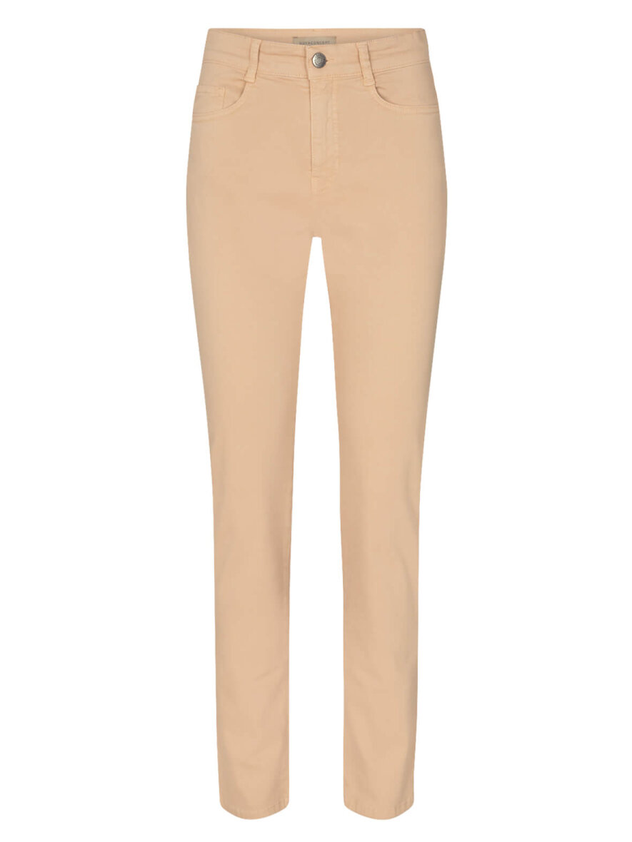 Super behagelige jeans fra Soyaconcept i lys camel. Jeans'ene er Skinny Fit med tætsiddende pasform helt ned til anklerne. Denne model er smallere ved anklerne end en Slim Fit. 5-lommer og lukkes med lynlås og knap.