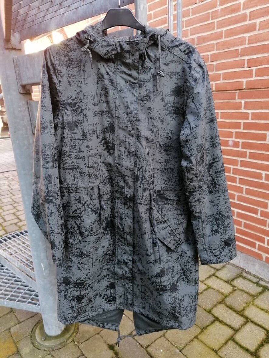 Praktisk og funktionel softshell jakke fra Ilse Jacobsen. Den flotte splash model er rummelig og falder rigtig flot på kroppen. Jakken kan snøres ind i taljen. Med hætte, lommer og gennemlyn. Ilse Jacobsen dame softshell jakken kan også snøres ind i bunden, samt ved hætten. Jakken kan bruges hele året rundt, og afviser både vind og vand.