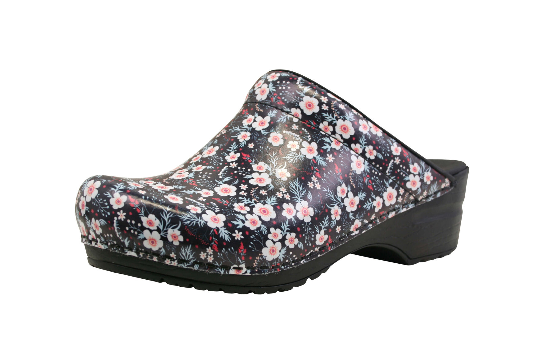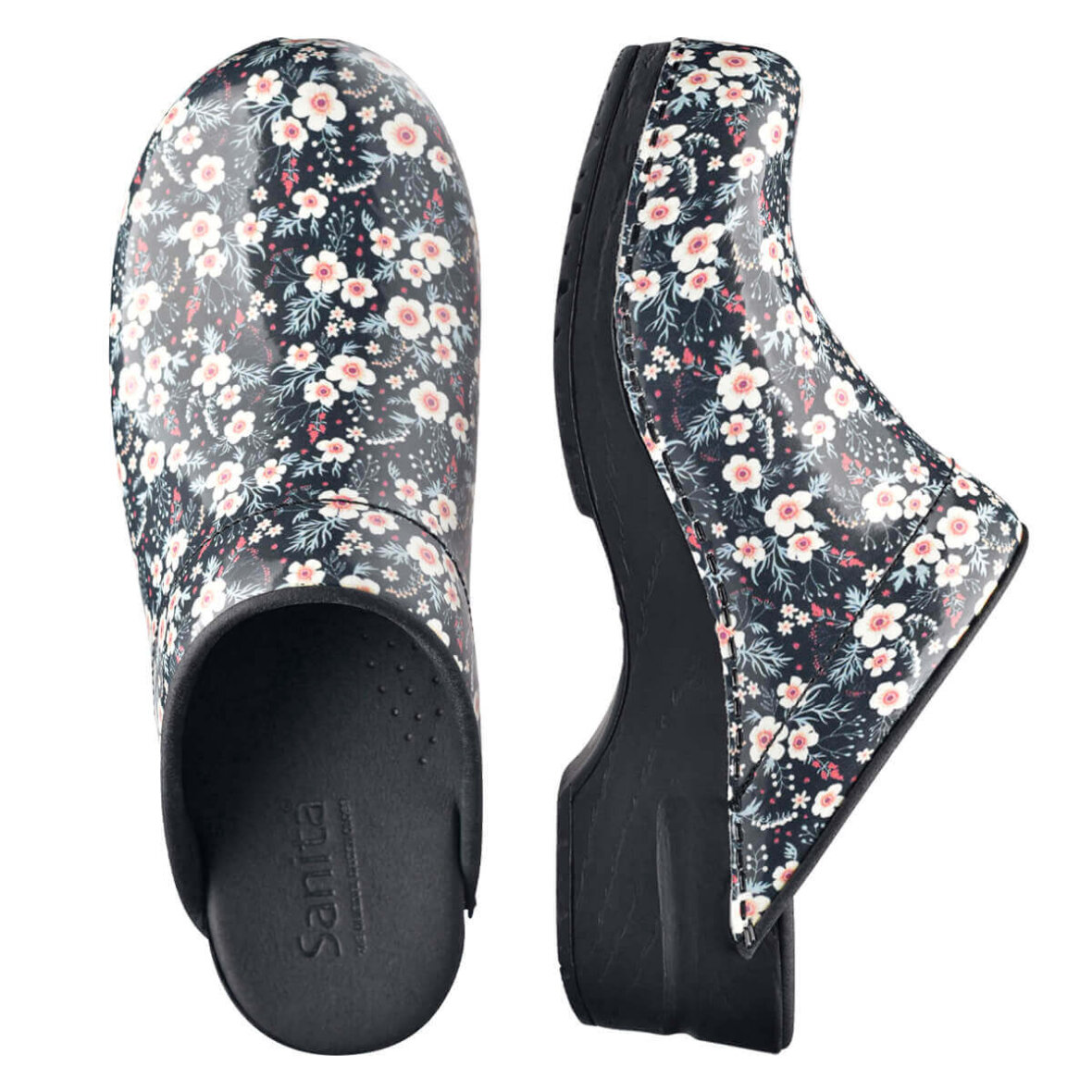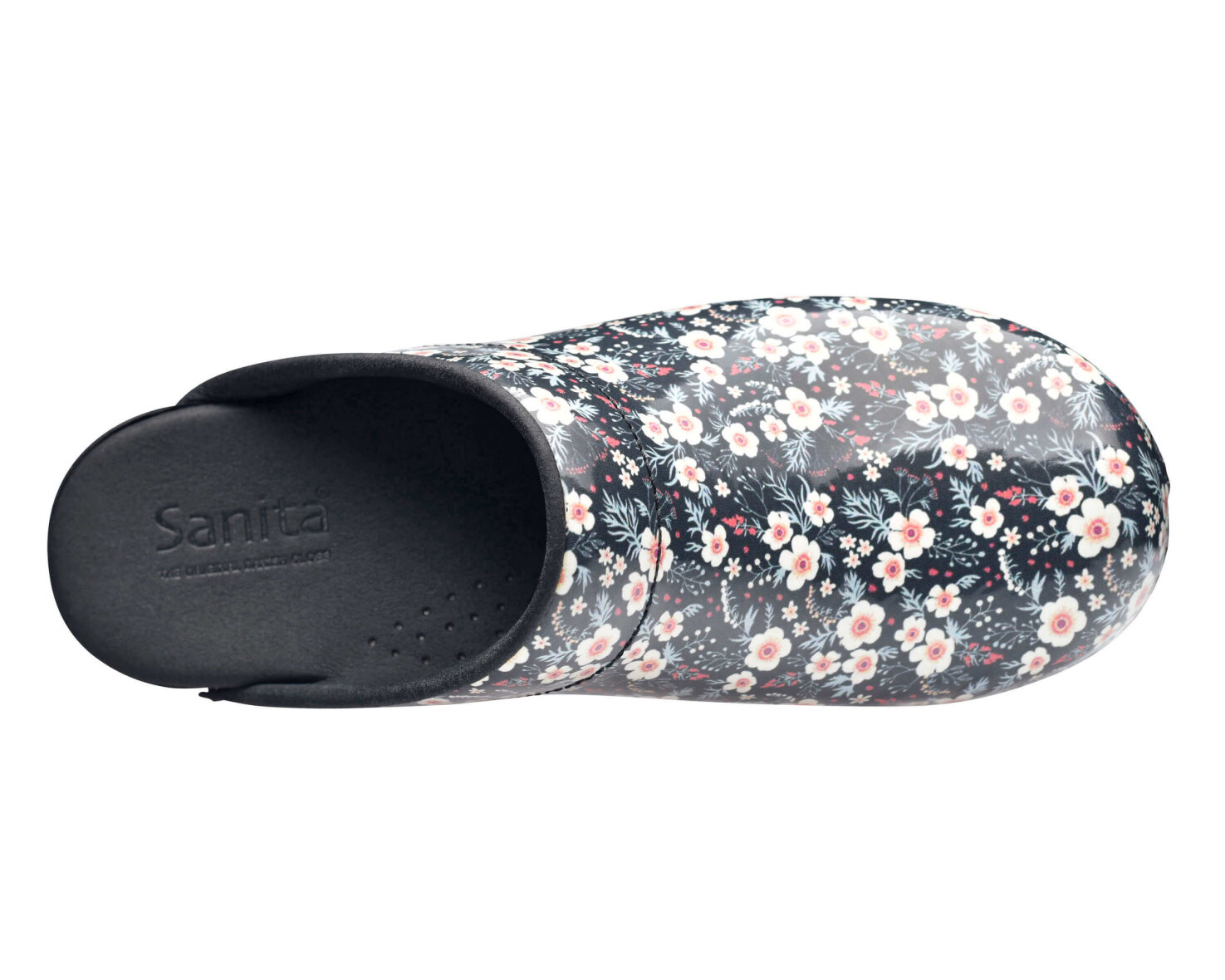 Komfortable træsko i det flotteste blomster mønster fra Sanita. Når du køber en Sanita Original træsko, får du en træsko som er lavet i markedets bedste læder kvalitet. Træskoen er lavet med PU (polyurethan) sål, som sammen med den bløde onSteam indlægssål giver dig en god komfort, fleksibilitet samt stødabsorbering.