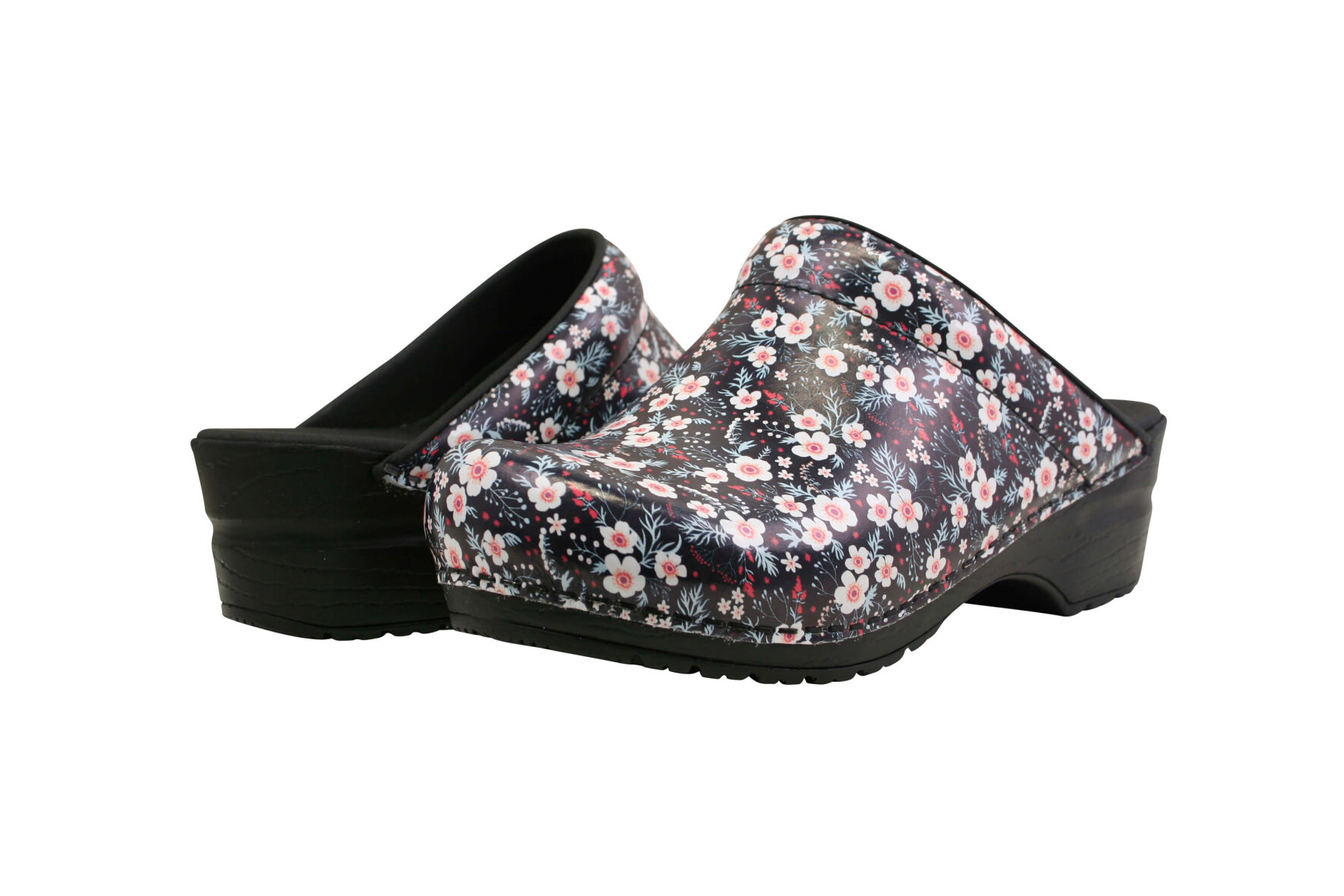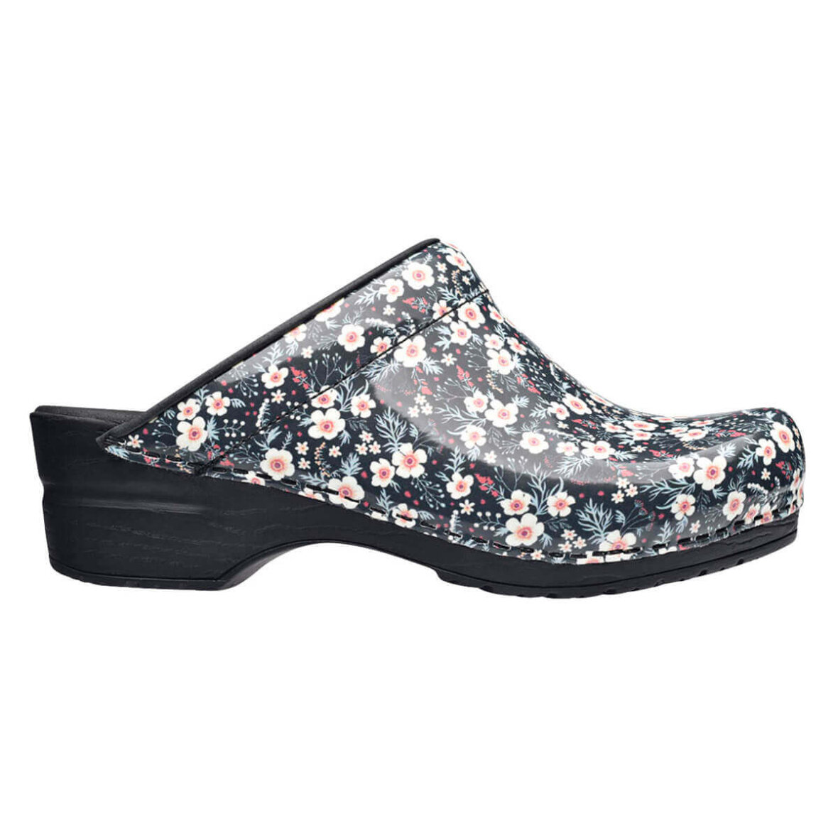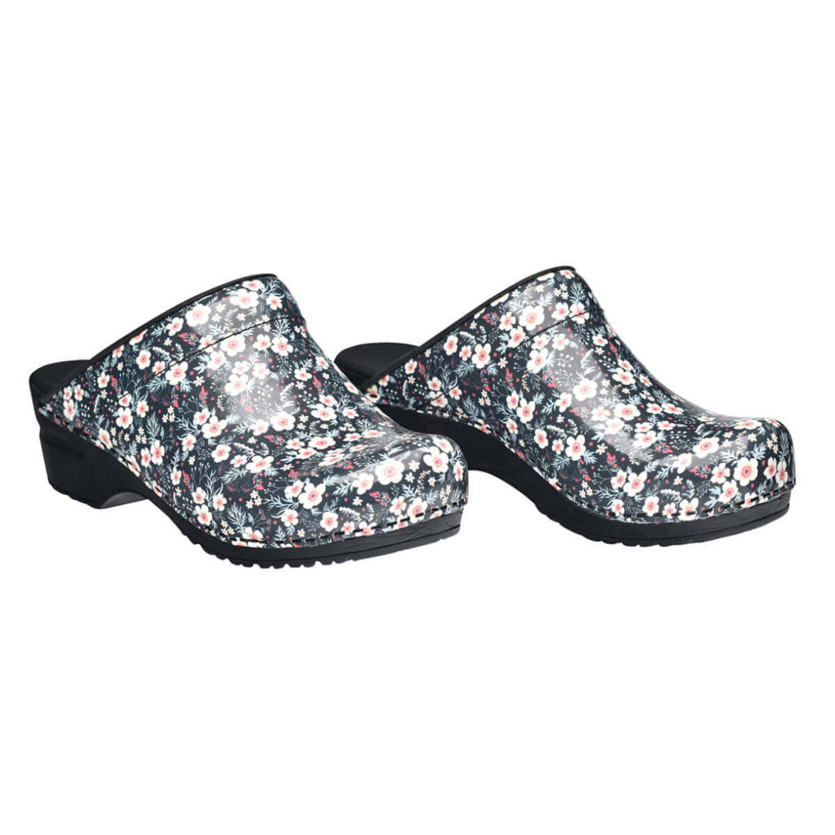 Komfortable træsko i det flotteste blomster mønster fra Sanita. Når du køber en Sanita Original træsko, får du en træsko som er lavet i markedets bedste læder kvalitet. Træskoen er lavet med PU (polyurethan) sål, som sammen med den bløde onSteam indlægssål giver dig en god komfort, fleksibilitet samt stødabsorbering.