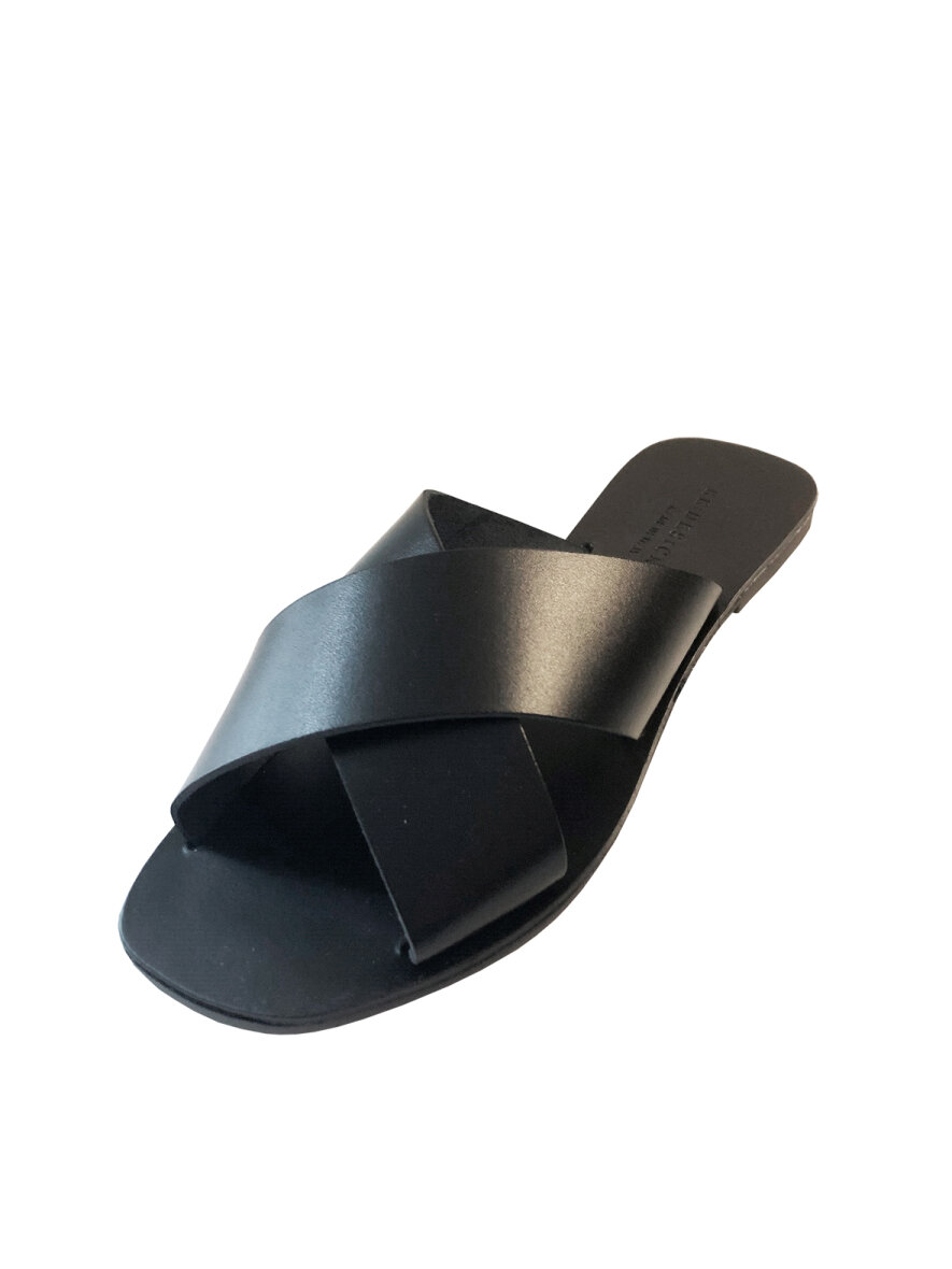 Lækker sandal fra Re:Designed. Sandalen er lavet i skind, med to krydsremme over vristen. Super fin sandal som kan bruges til hverdag og festlige begivenheder.