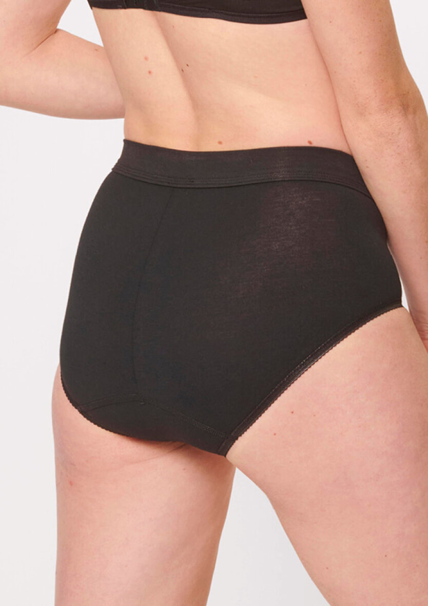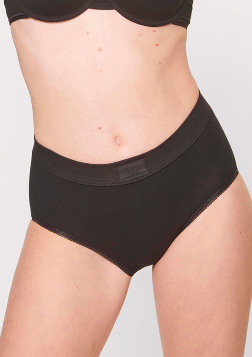 Den brede, sømløse linning er lavet i en rørformet konstruktion, der ligger fladt mod kroppen og ikke strammer, hvilket giver en næsten usynlig overgang under tøjet. De flade og bløde kanter øger komforten yderligere, og trusserne har et diskret sloggi-logo på linningen.