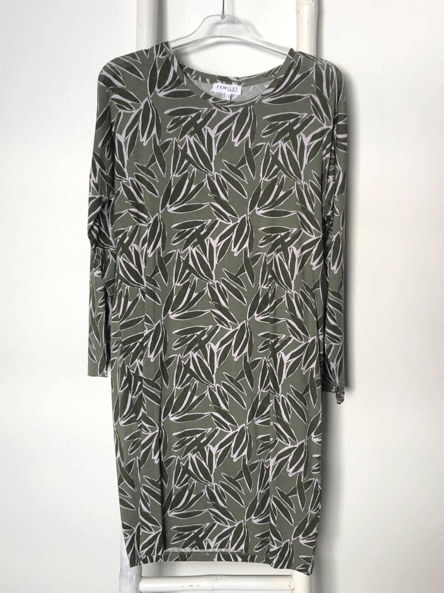 Super blød og lækker natkjole fra Femilet. Natkjolen har rund halsudskæring og lange ærmer. Super flot all-over print i oliven-mix. Den absorberer meget fugtighed, tørrer hurtigt, minimerer kropslugt og sikrer en behagelig frisk følelse til enhver tid.