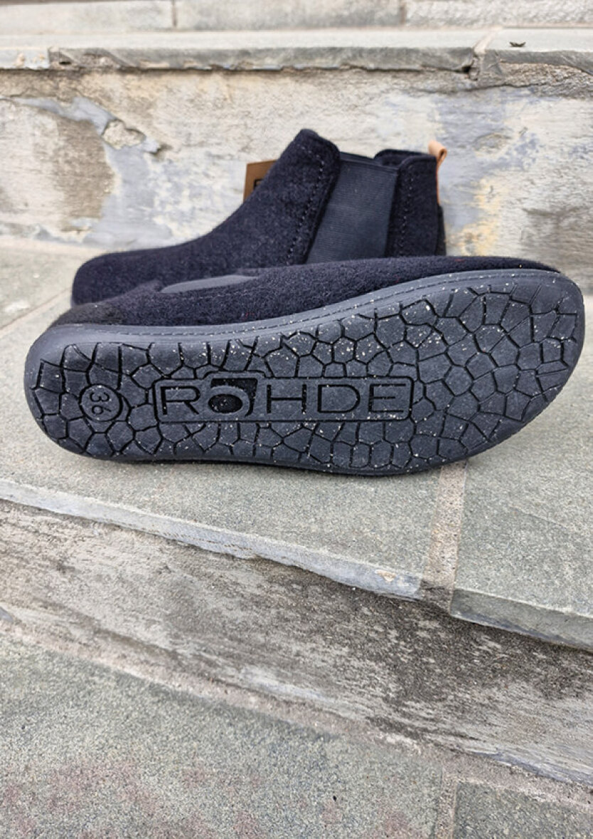 Komfortabel hjemmesko fra Rohde. Hjemmeskoen er med elastik i skaftet så den er nem at få af og på. Overdelen er lavet af uldfilt med en udtagelig dæksål i ruskind indeni. Hjemmeskoen er lavet i Eco-venlig materiale, da overdelen er lavet med 50% genbrugsuld og ydersålen er lavet af genbrugsgummi.