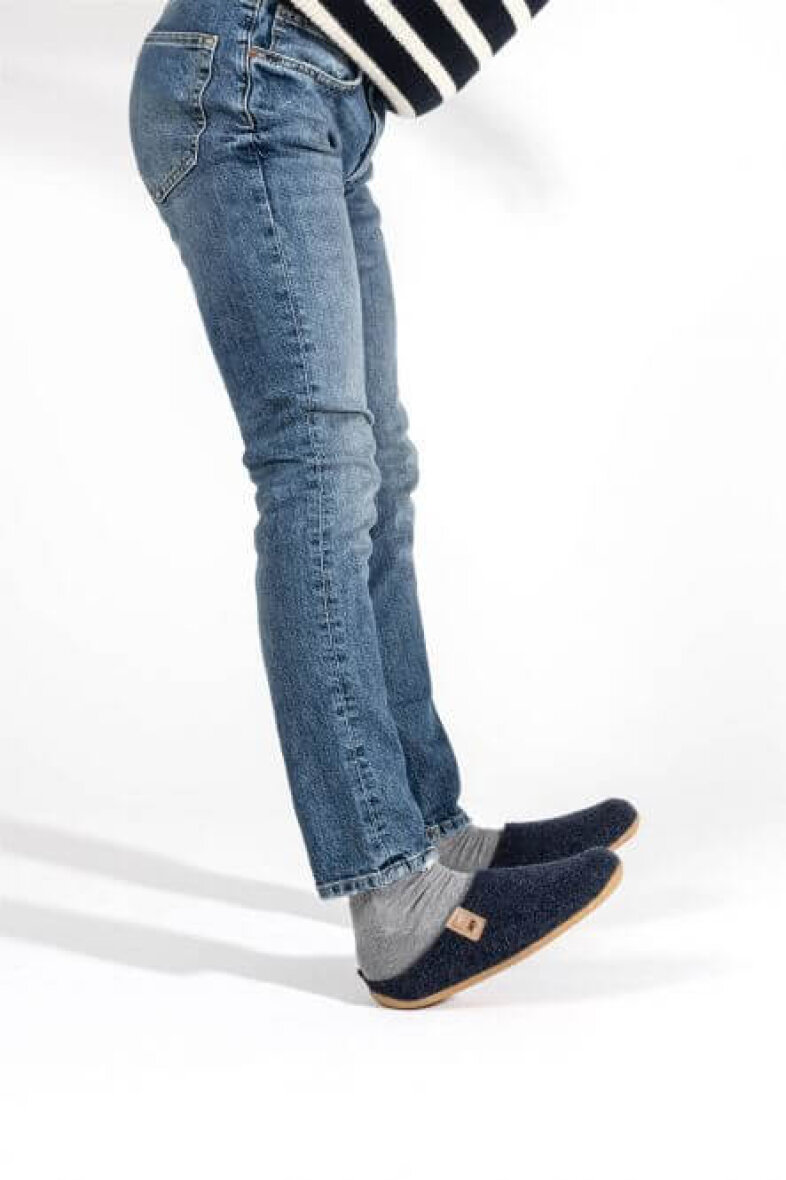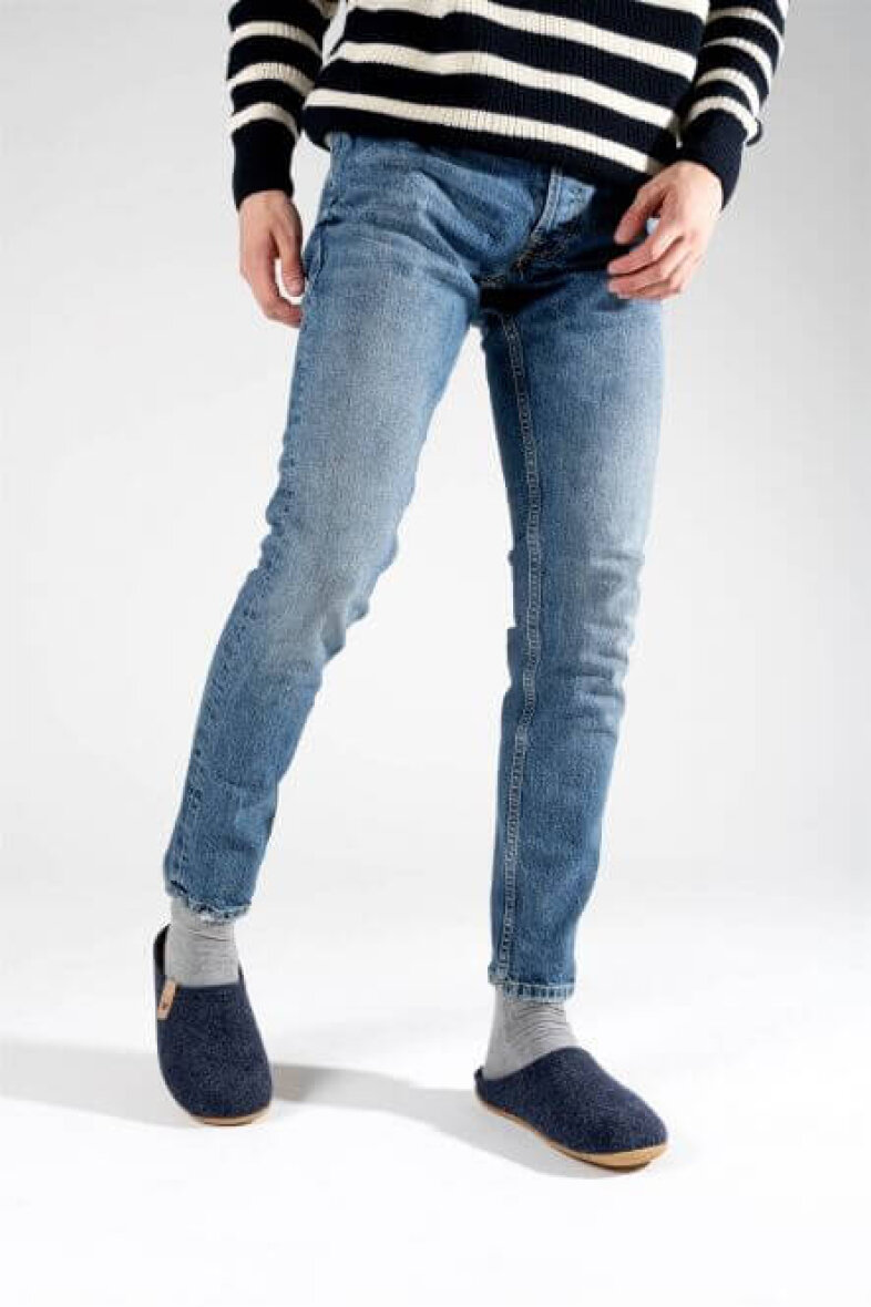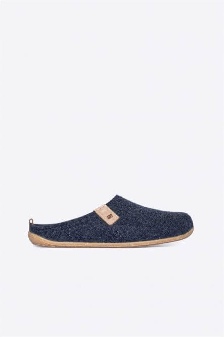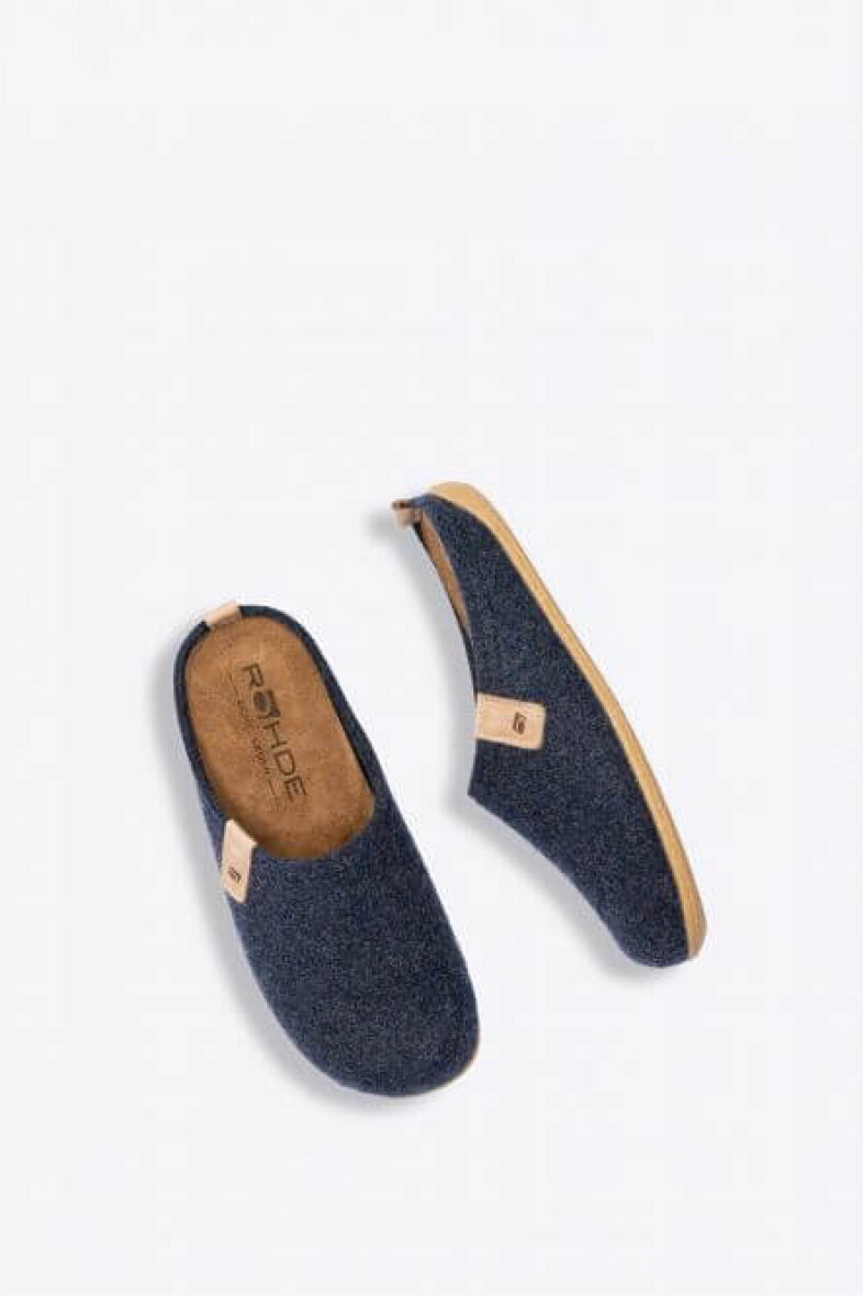 Komfortabel herre hjemmesko fra Rohde. Hjemmeskoen er lavet i recycled mørkeblå filt. Hjemmeskoen er uden hælkappe, så den er nem at få af og på. Indeni ligger en blød indlægssål, som er udtagelig. Med god pasform og komfort. Ydersålen er lavet af naturgummi, med skidhæmmende effekt.
