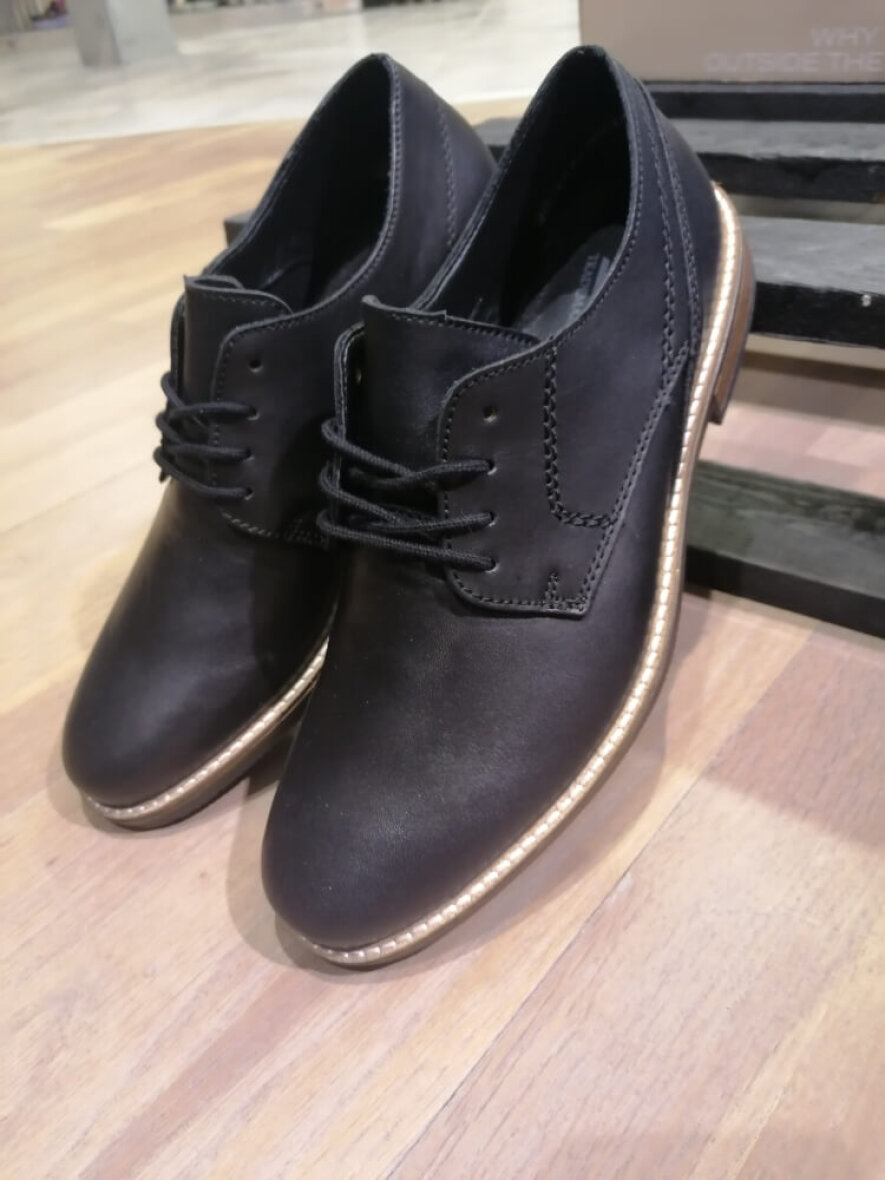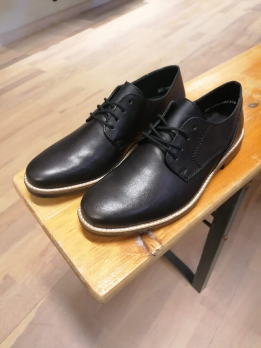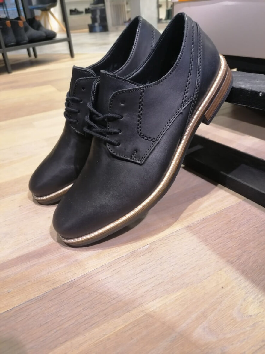 Stilfulde herresko med fine detaljer fra Rieker. Skoen er lavet i glat læder med snøreluk over vristen. Skoen har lyse stikninger langs kanten, hvilket giver skoen et fedt look. En elegant herresko med god komfort og fleksibilitet, som kan bruges til både hverdag og fint brug.