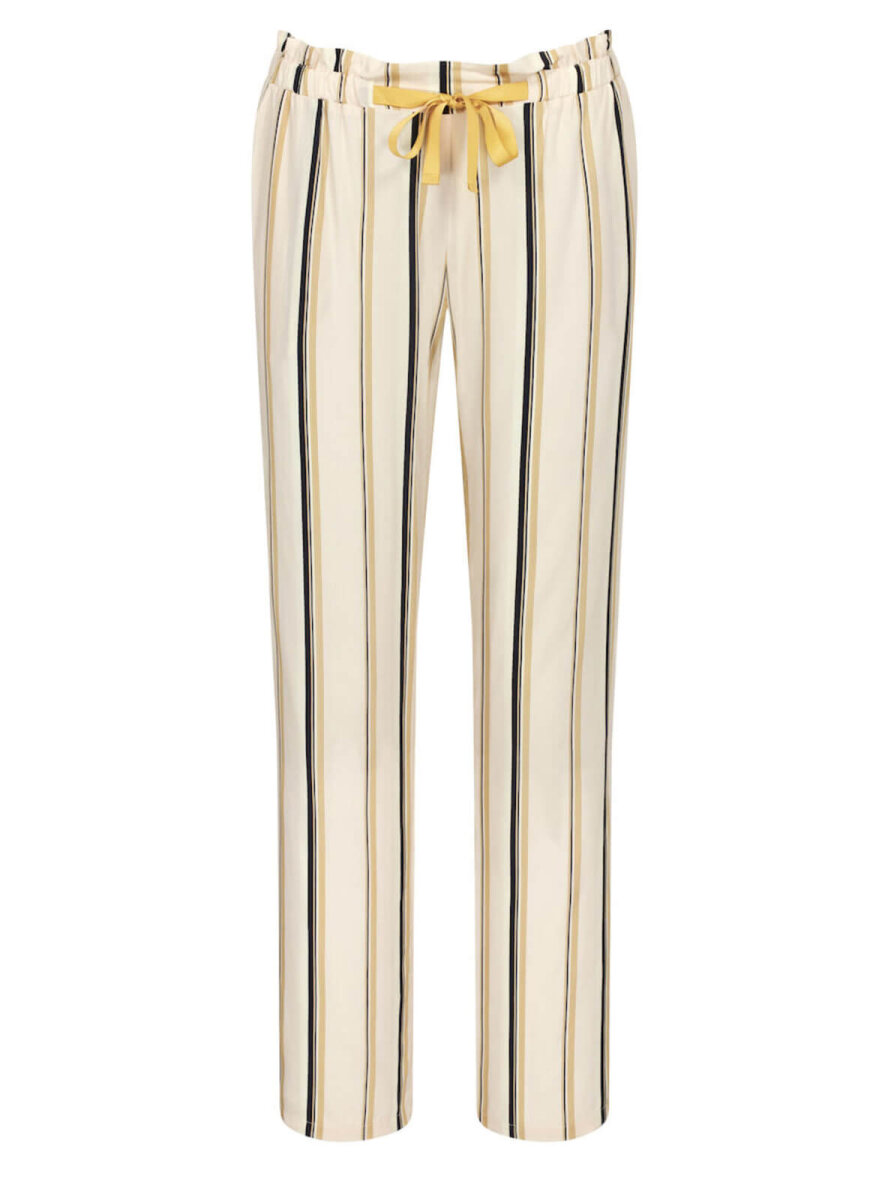 Sov med stil - i disse lækre natbukser fra Triumph med lodrette striber. Bukserne har elastik i taljen og bindebånd i guldfarve. Skrålommer og lige ben.