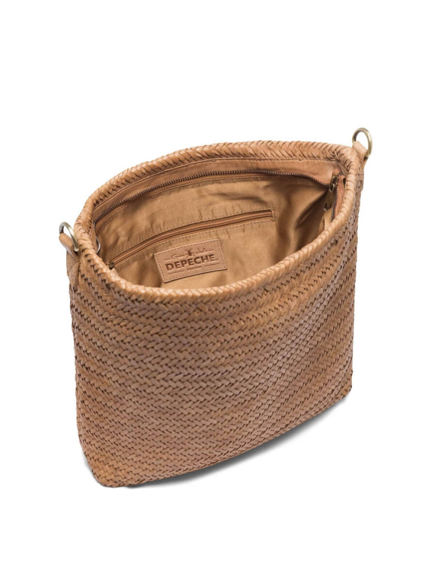Medium størrelse skuldertaske fra Depeche i blød og lækker skindkvalitet. Tasken er lavet i det fineste flet overalt, der giver tasken et eksklusivt sommerlook.Lukkes med lynlås.