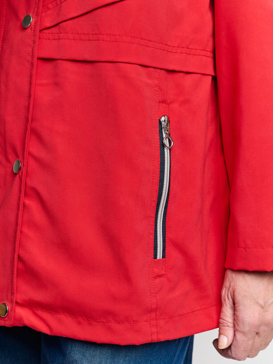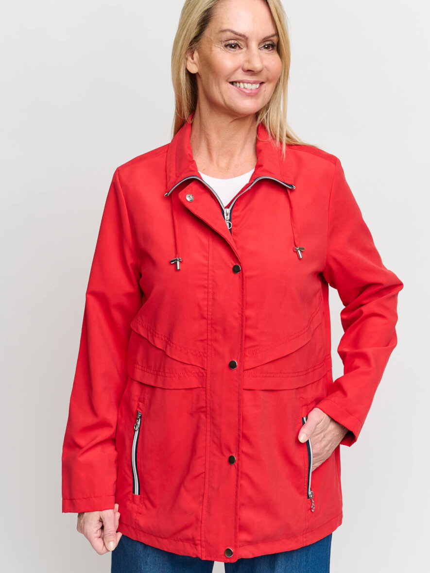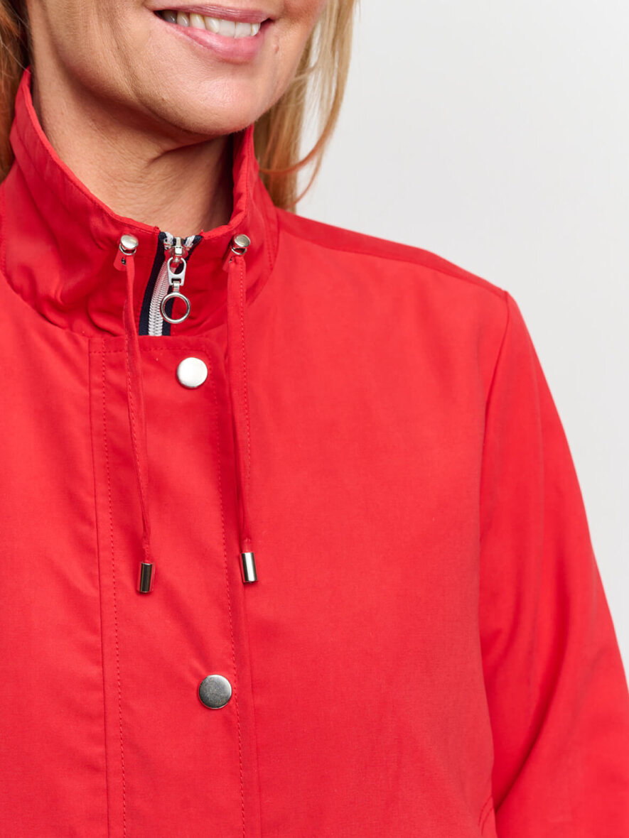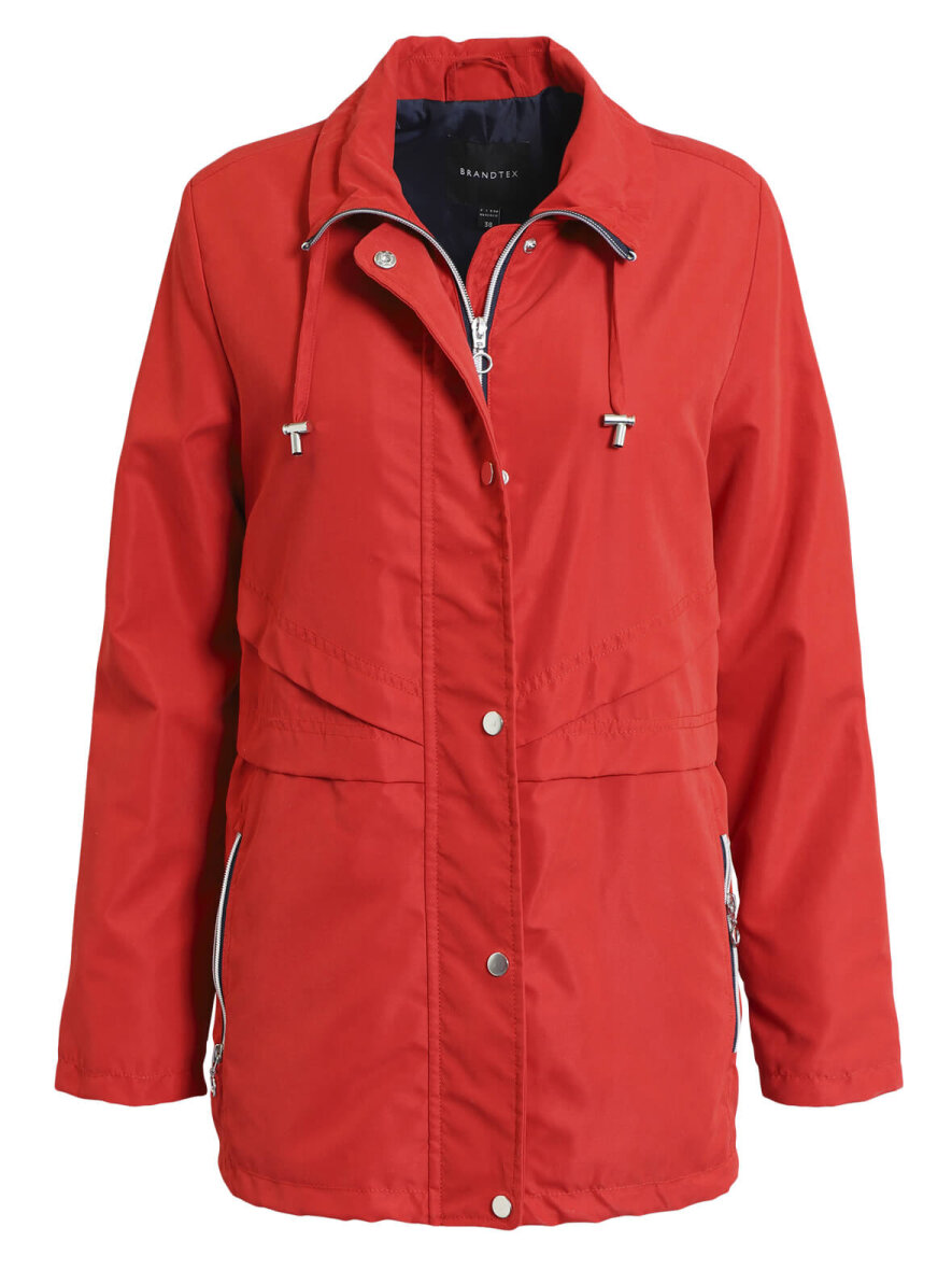 Flot overgangsjakke fra Brandtex med høj hals, lynlås og knapluk ned foran. Snøre i halsen. Lange ærmer med elastikkant indvendig - der tager al vind. To forlommer med lynlås. Indvendig snøre forneden.