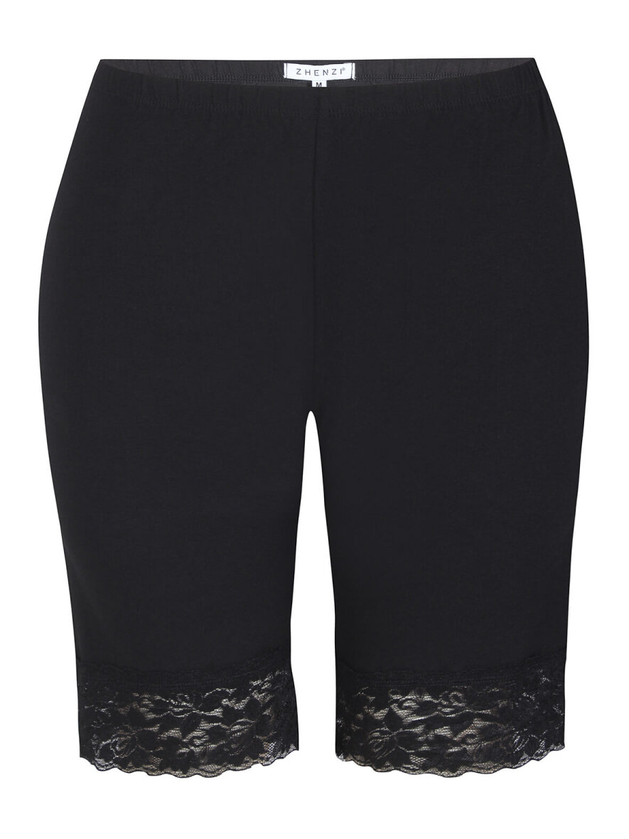 Super lækre shorts fra Zhenzi med elastikkant i taljen. Masser af stretch. Feminin bred blonde nederst på benene. Super behagelige at have på. Max 5% krymp.