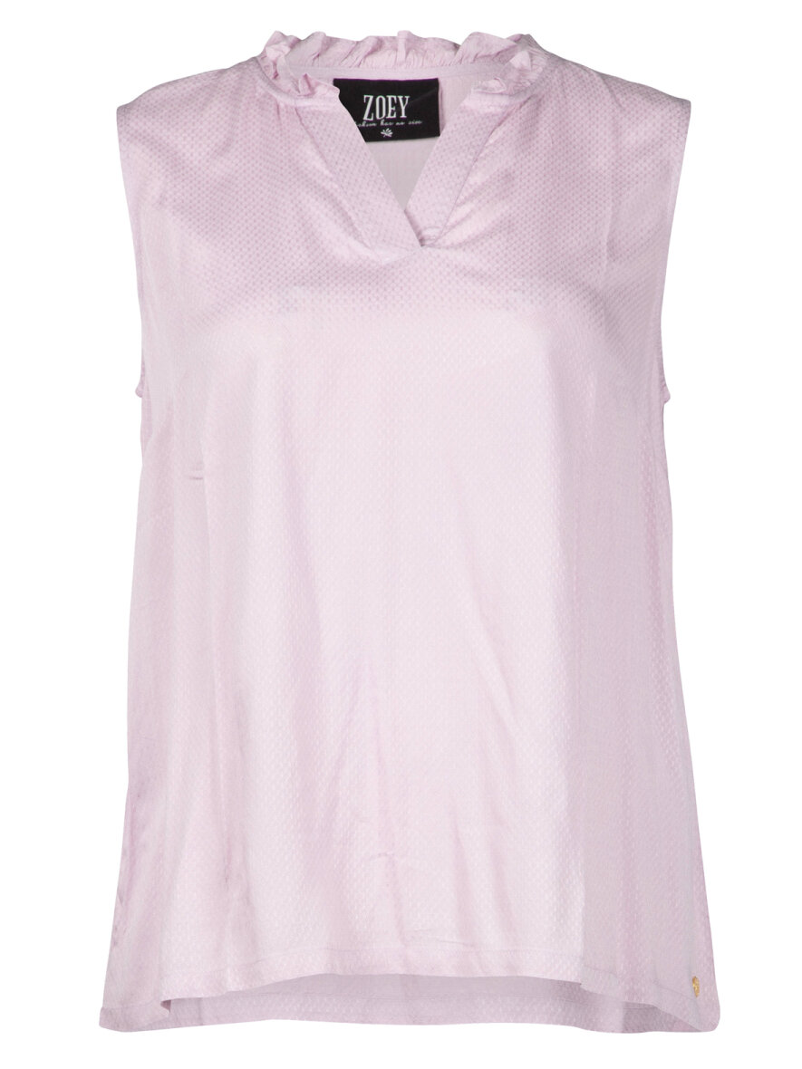 Super sød top fra Zoey i en let og behagelig viskosekvalitet og med en flot struktur i stoffet. Flot V-udskæring samt rynkedetaljer ved skuldrene. Rund hals med lille flæsekant.