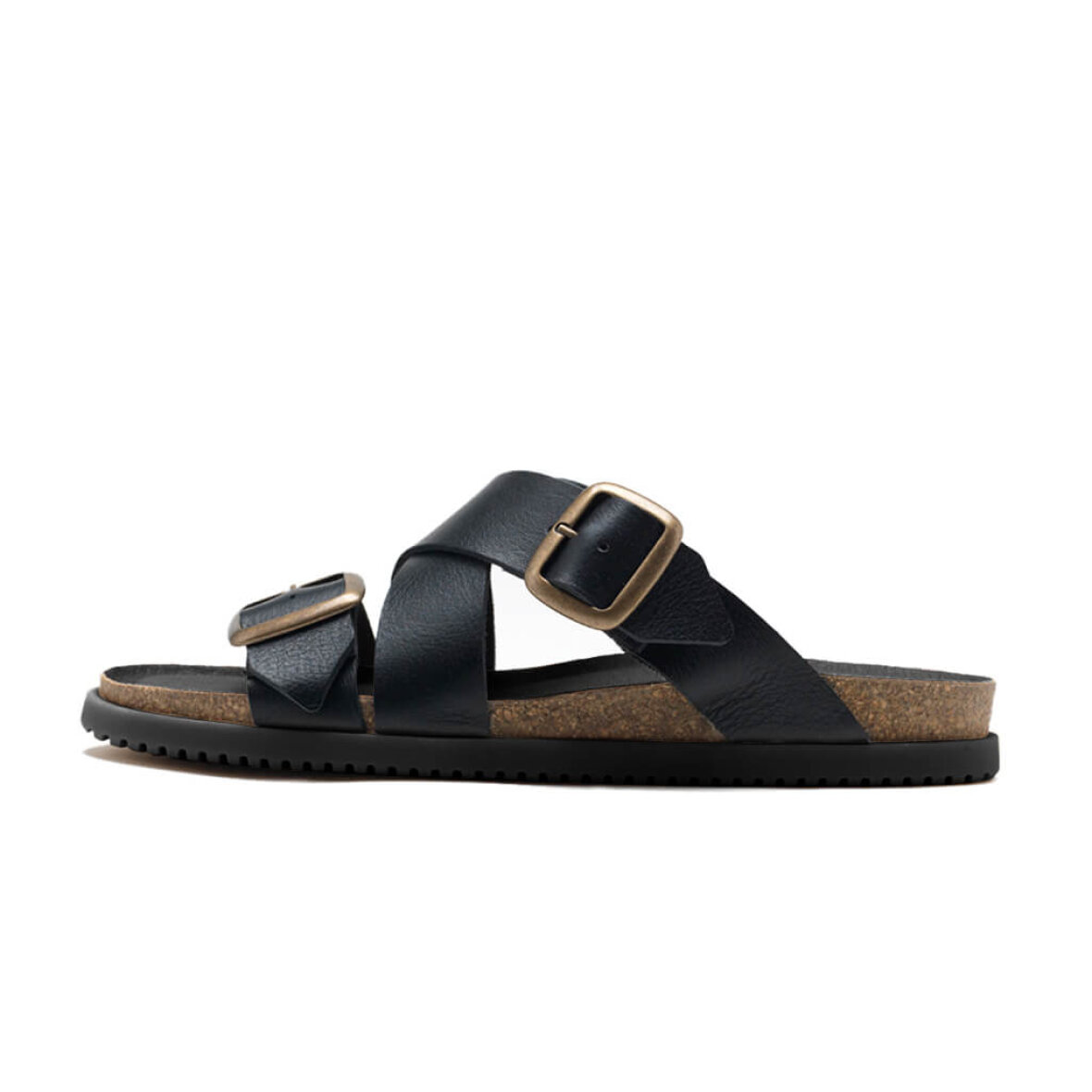 Den flotte Minna slipper sandal er lavet i klassisk sort vegetabilsk garvet læder på overdelen. Sandalen har den behagelige ergonomiske letvægtssål, som dine fødder vil elske. Sandalen har to justerbare spænde remmer med et flot kryds design over forfoden.
