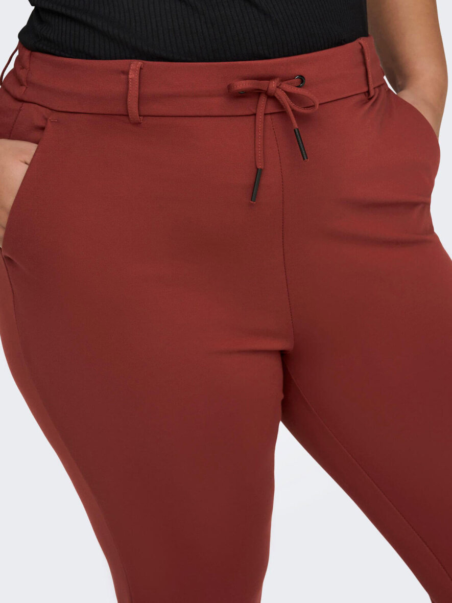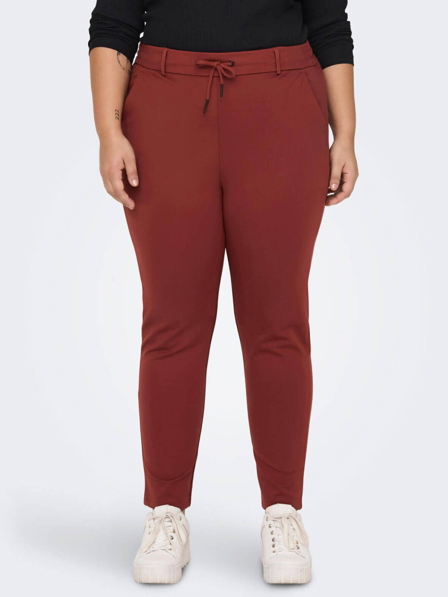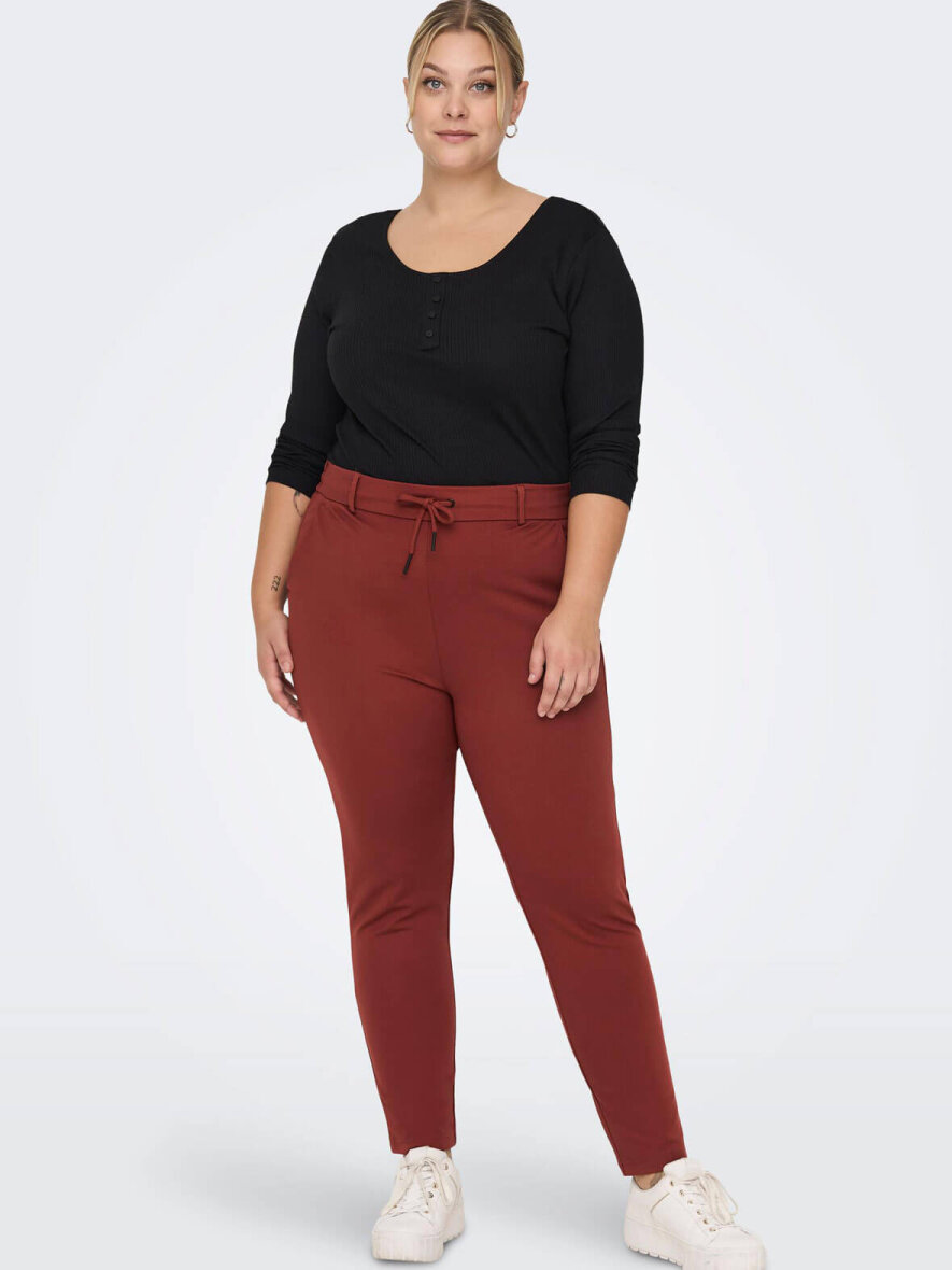 Super bløde og behagelige bukser fra ONLY Carmakoma med elastik i taljen bag på og bindesnøre foran. To stiklommer og to pyntelommer bagpå. Strækbart materiale.