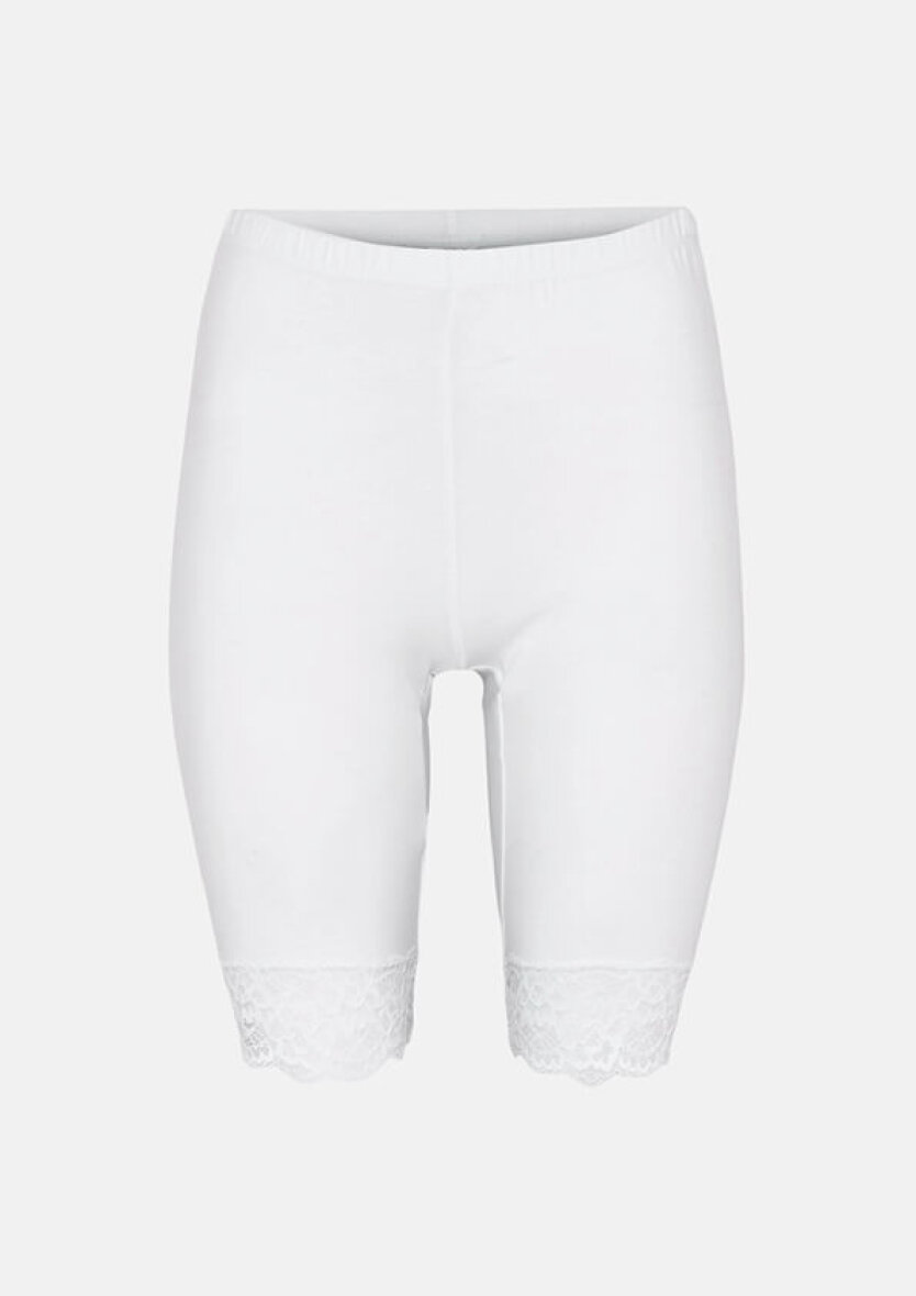 Klassiske hvide cykelshorts fra Decoy med en feminin blondekant. Perfekte til at have under en kjole eller nederdel eller som ekstra støtte ud over nylonstrømperne.