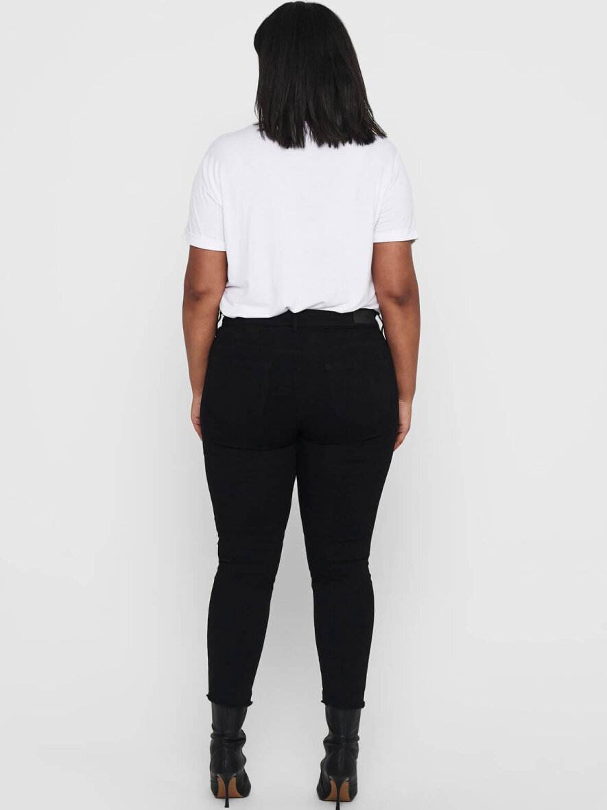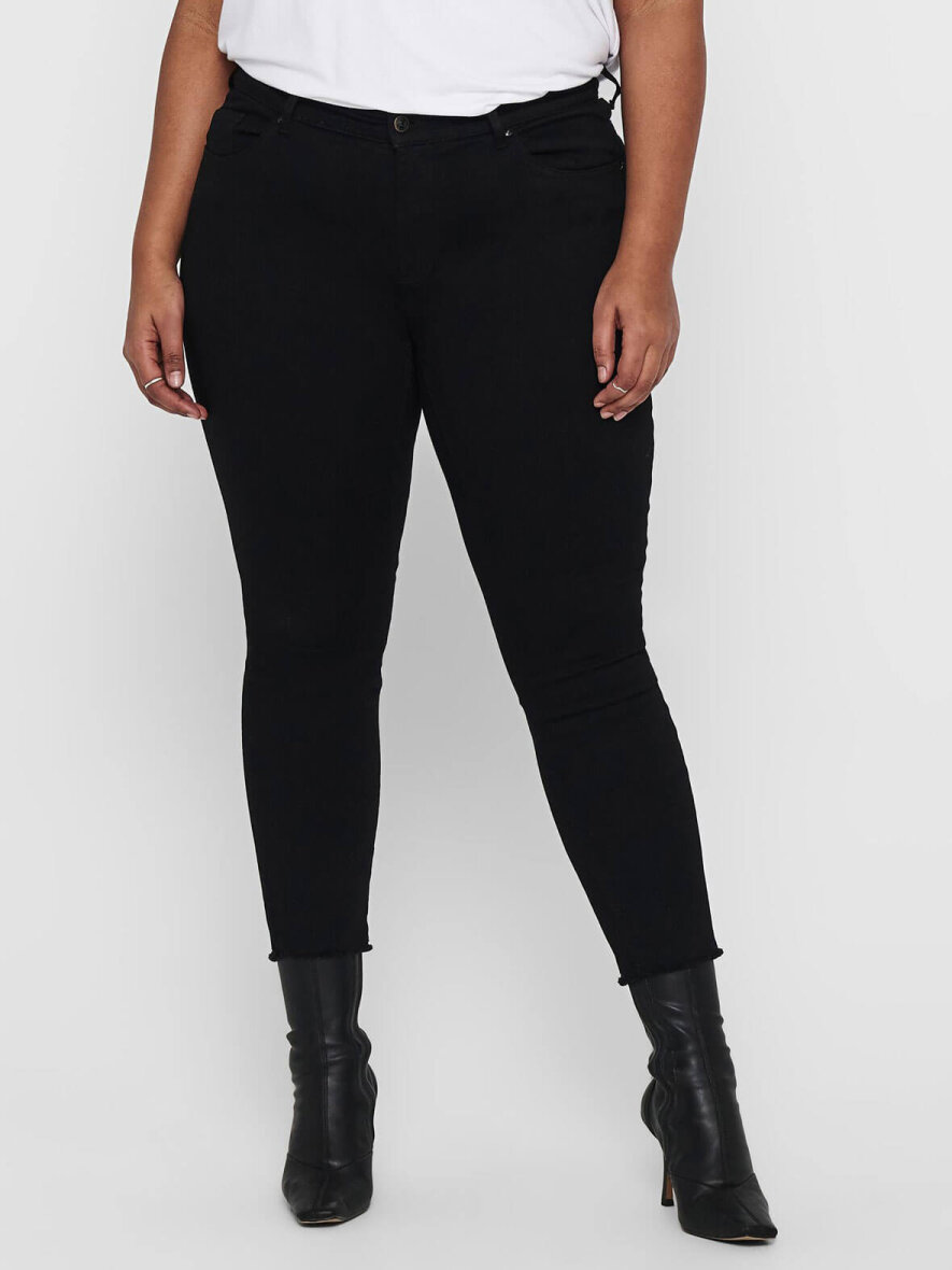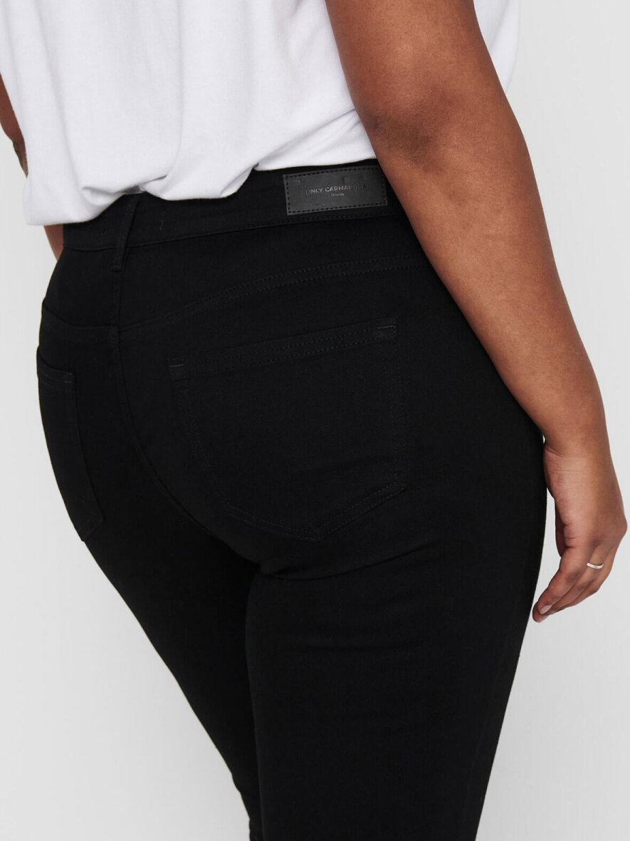 Curvy buks fra ONLY Carmakoma med push-up effekt. Modellen er Skinny fit med normal talje. 5-lommer og bæltestropper. Lukkes med knap og lynlås. Strækbart materiale.