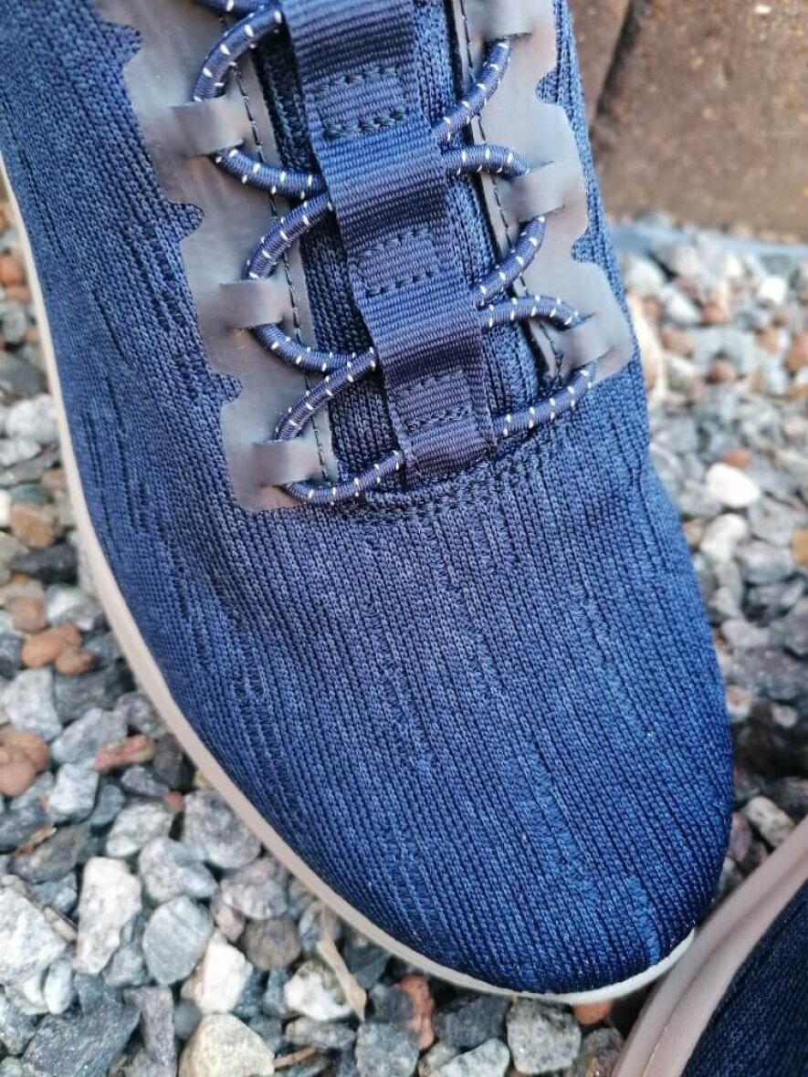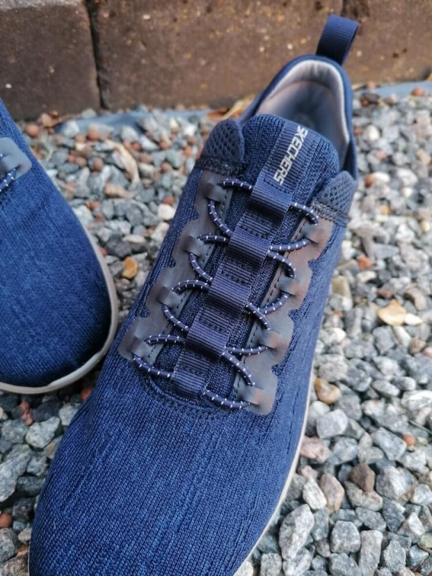 Komfortabel slip on sneakers fra Skechers i en skøn mørkeblå farve. Overdelen er lavet i blødt vævet mesh tekstil, som giver sig ved brug. Skoen er med elastik snøre over vristen, så skoen er nem at få af og på. Indersålen er en komfortabel air-cooled memory foam sål, som dine fødder vil elske.