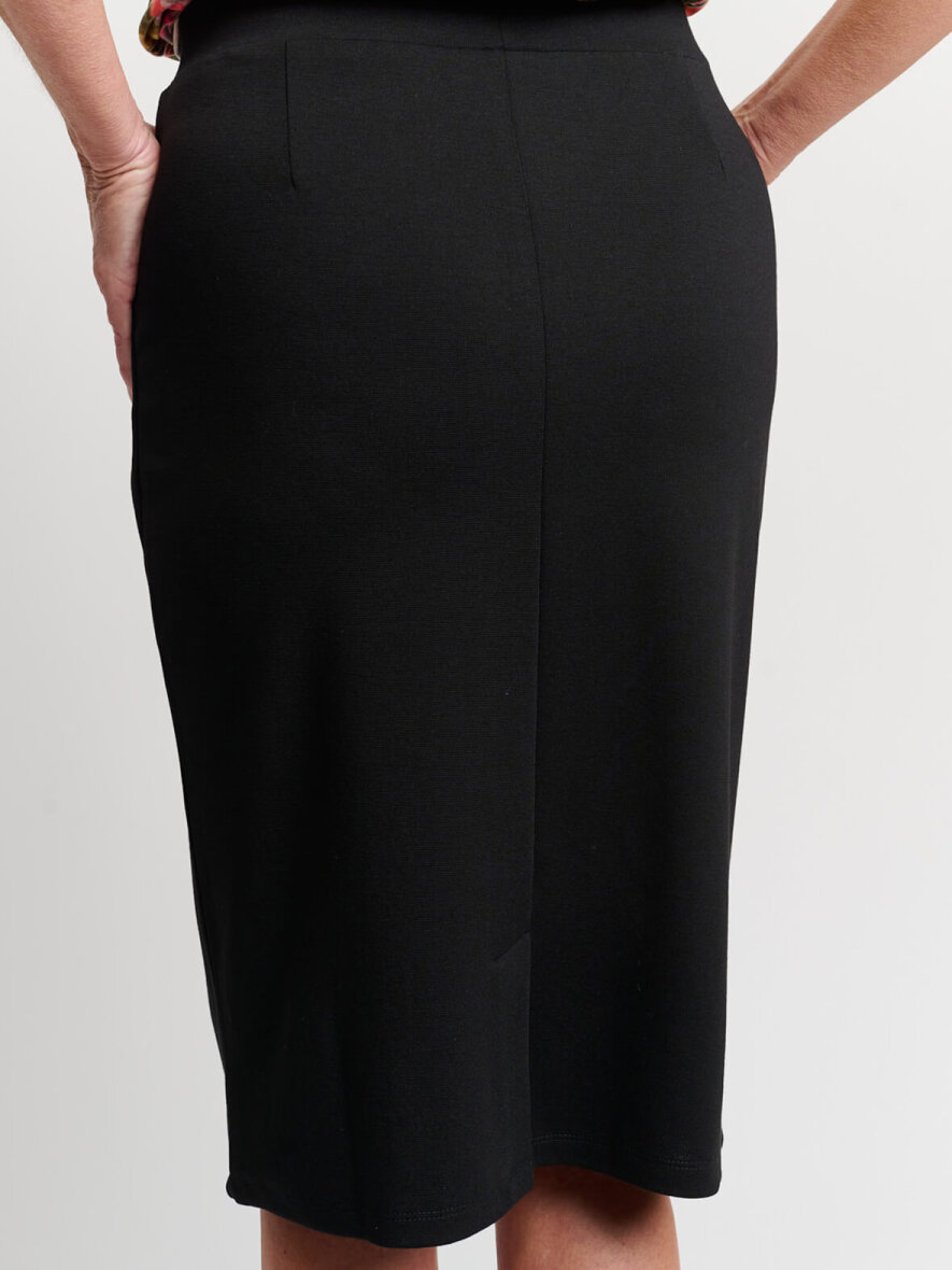 Elegant nederdel fra Signature i god kvalitet. Bred elastikkant med viskose og spandex i taljen. Kort slids nederst bagpå. Blød og behagelig at have på.