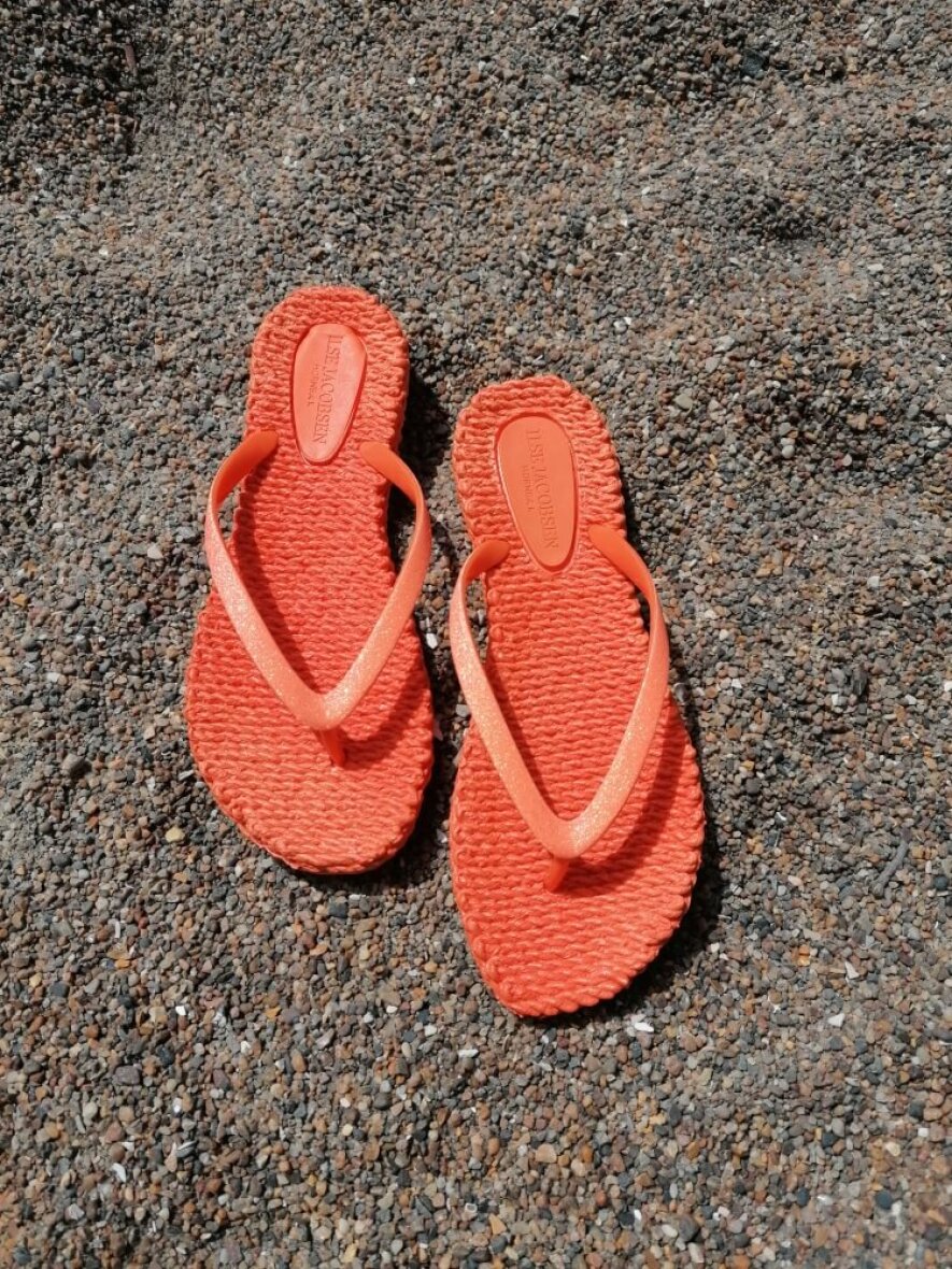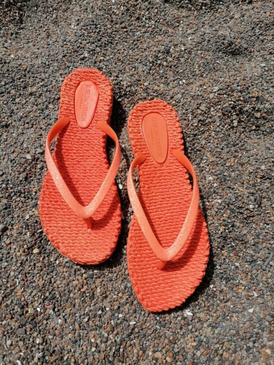 Skønne orange klip klapper fra Ilse Jacobsen med glitter på tåstropperne. Perfekt til en dag på stranden eller en spadsere tur.