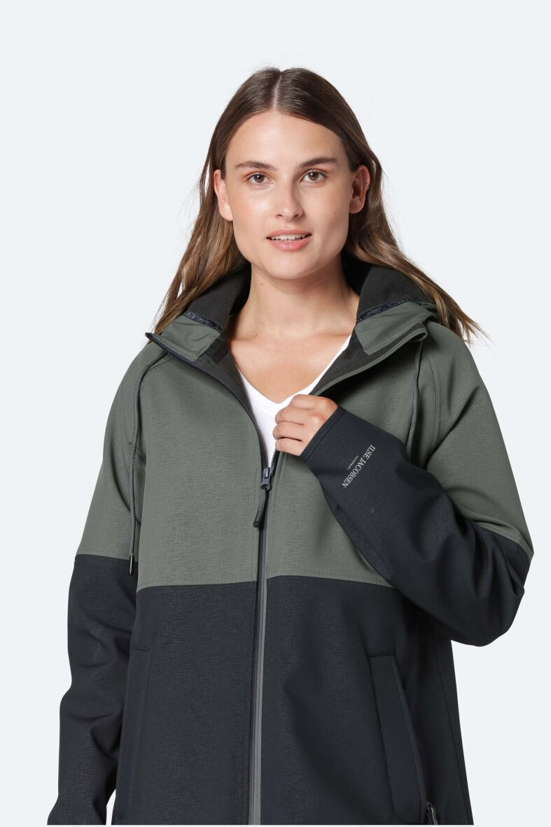 Lækker softshell jakke fra Ilse Jacobsen i et smart grøn og sort design. Jakken er åndbar, vindtæt og vandafvisende.