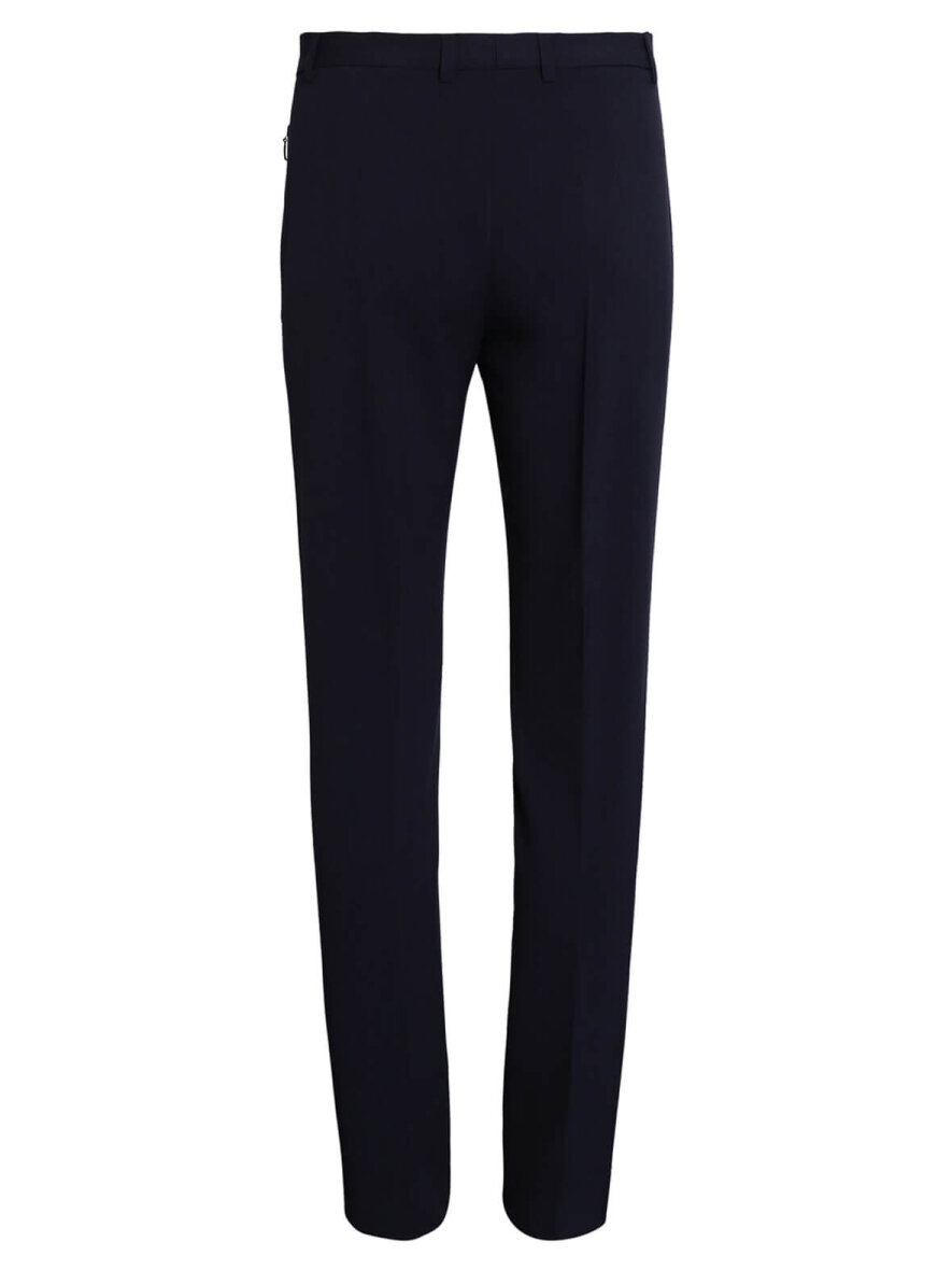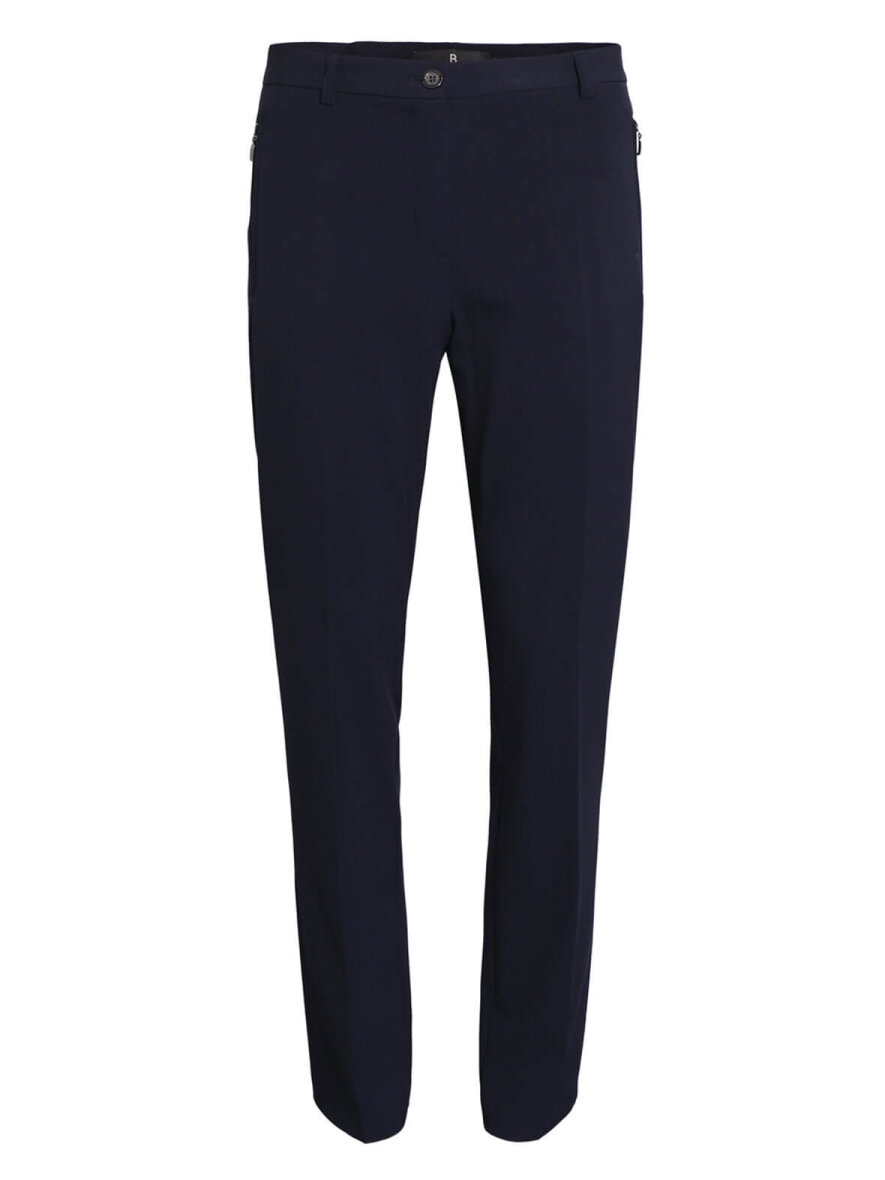 Elegante bukser fra Brandtex med pressefold ned på midten af benene. Lukkes med knap og lynlås. To skrålommer med lynlås.