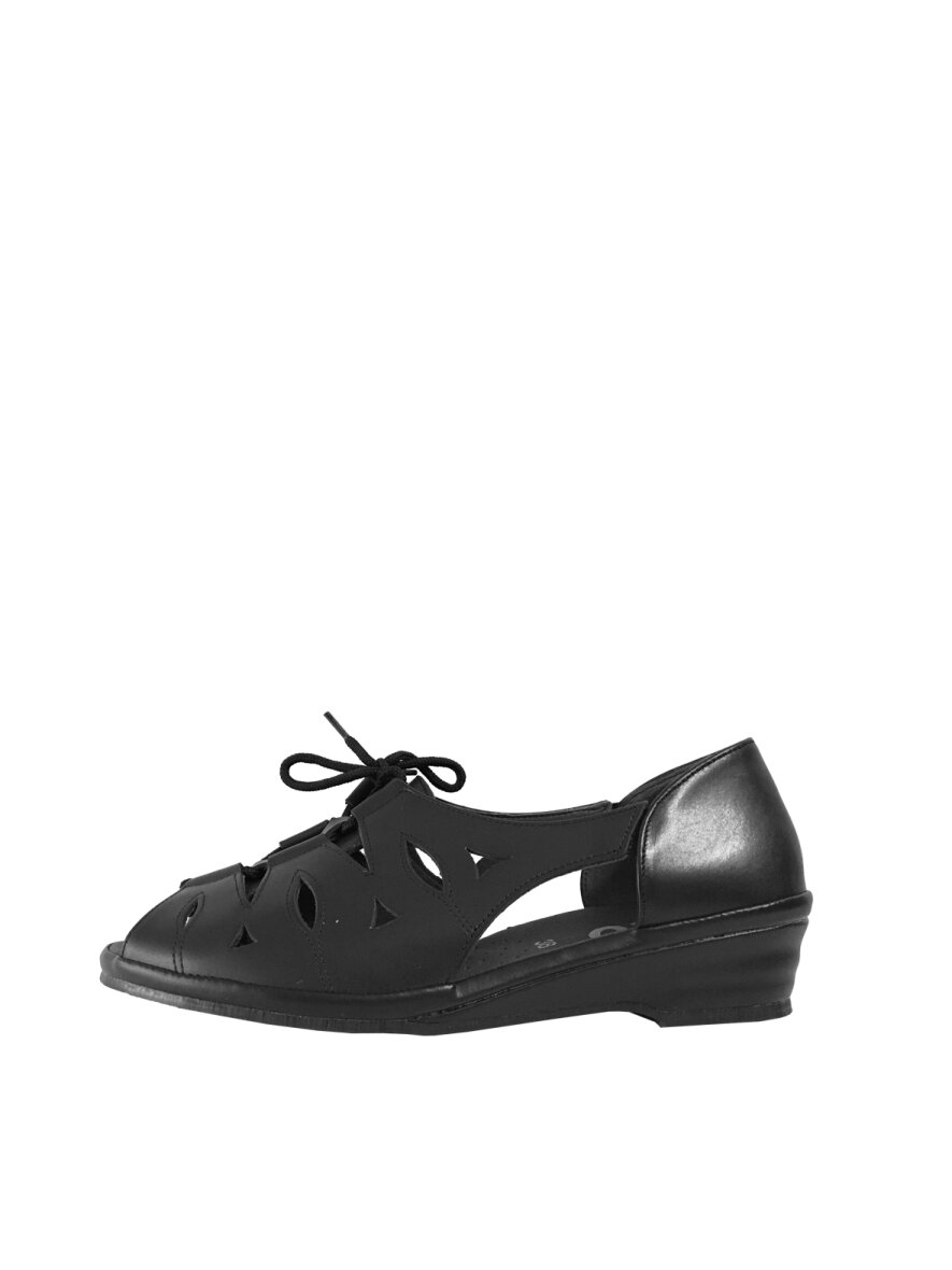 Fin damesandal med snøreluk fra Jaco. Skoen er lavet i skind og har et fin hulmønster, som giver luft til fødderne. Skoen har en fast hælkappe, som giver en god stabilitet.
