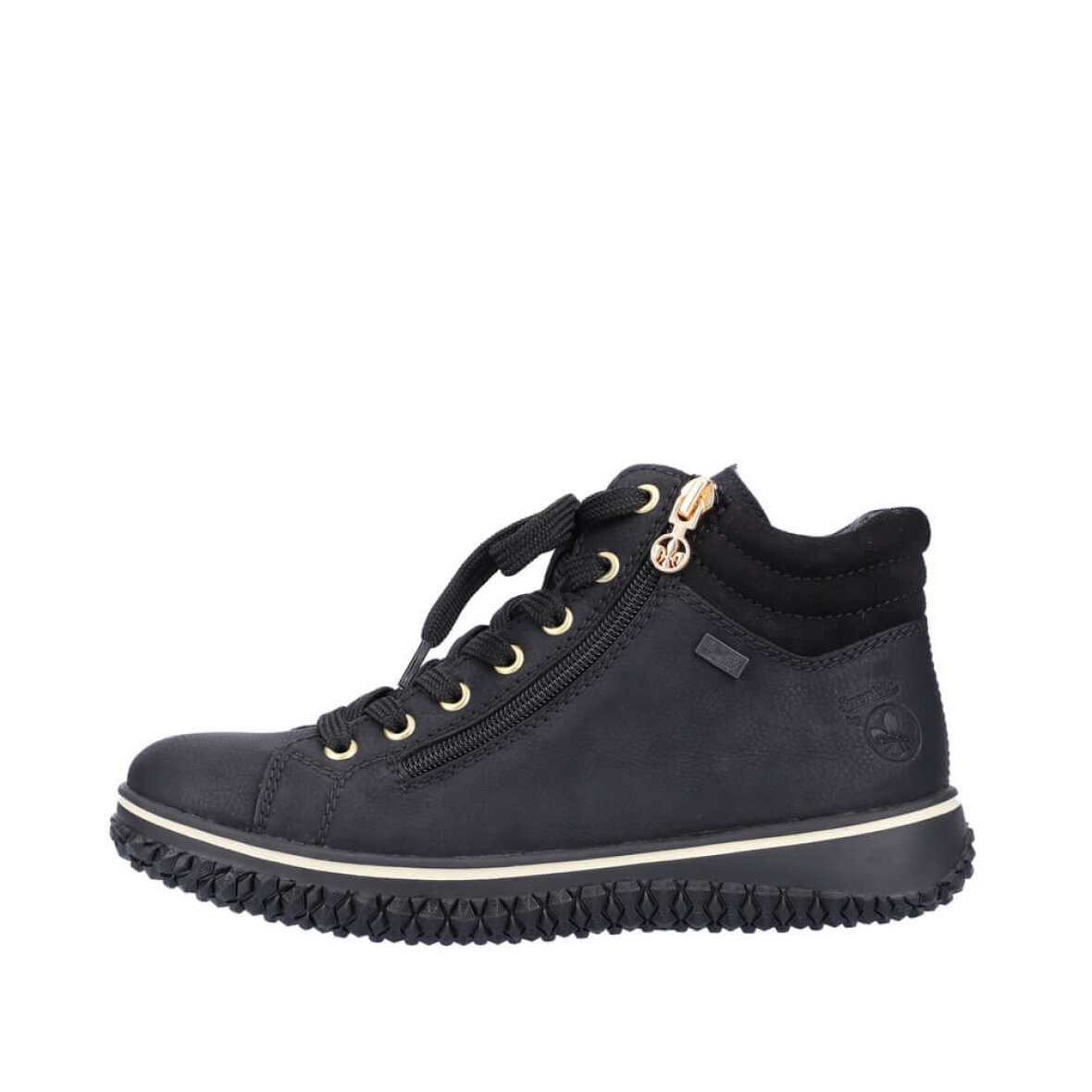 Let foret støvle med fine detaljer fra Rieker. Støvlen har lynlås i begge sider samt justérbare snøre foran, som gør det nemt at kommer i og af støvlen. Støvlen har RiekerTex i sig, som gør den kraftigt vandafvisende.