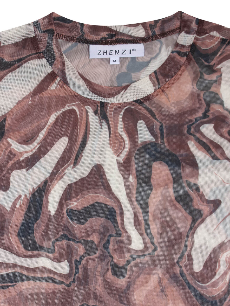 Zhenzi mesh bluse brun/off
