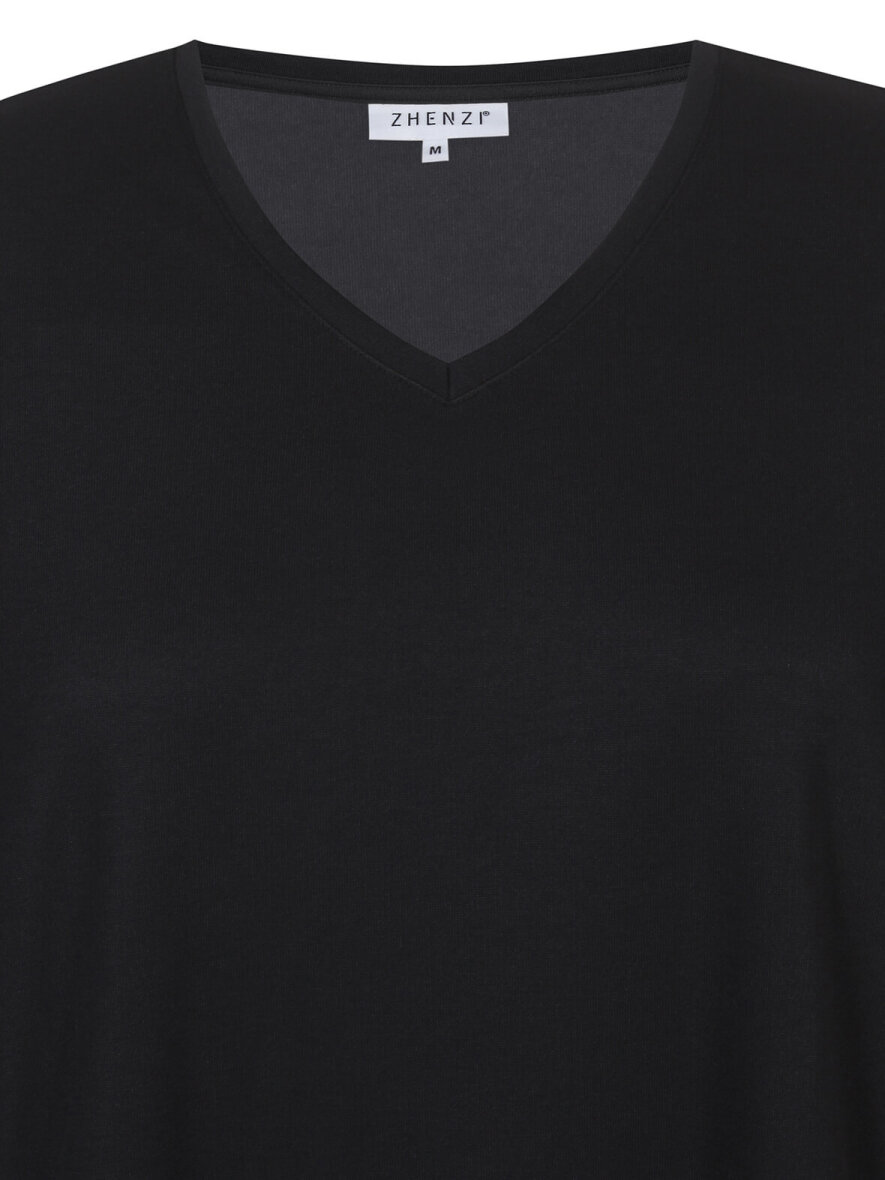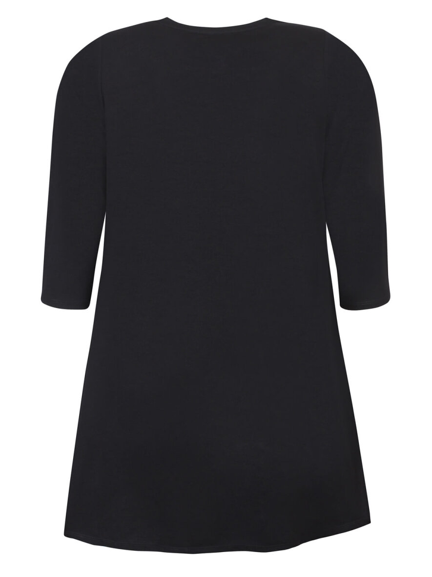 Enkel og lækker jersey tunika i sort. V-halsudskæring og lange ærmer. Tunikaen har A-facon. To skrålommer foran. Max 5% krymp.