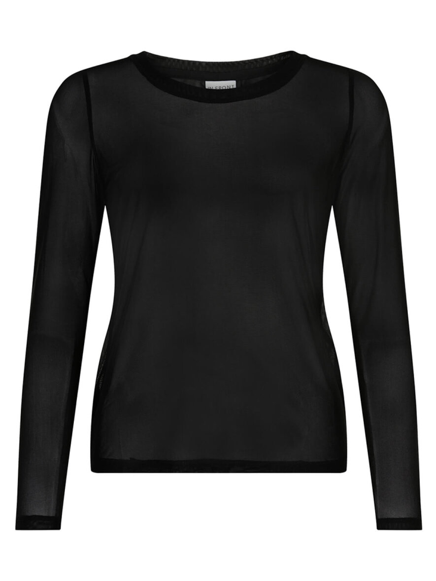 Super blød og behagelig mesh fra IN FRONT i sort. Rund hals og lange ærmer.