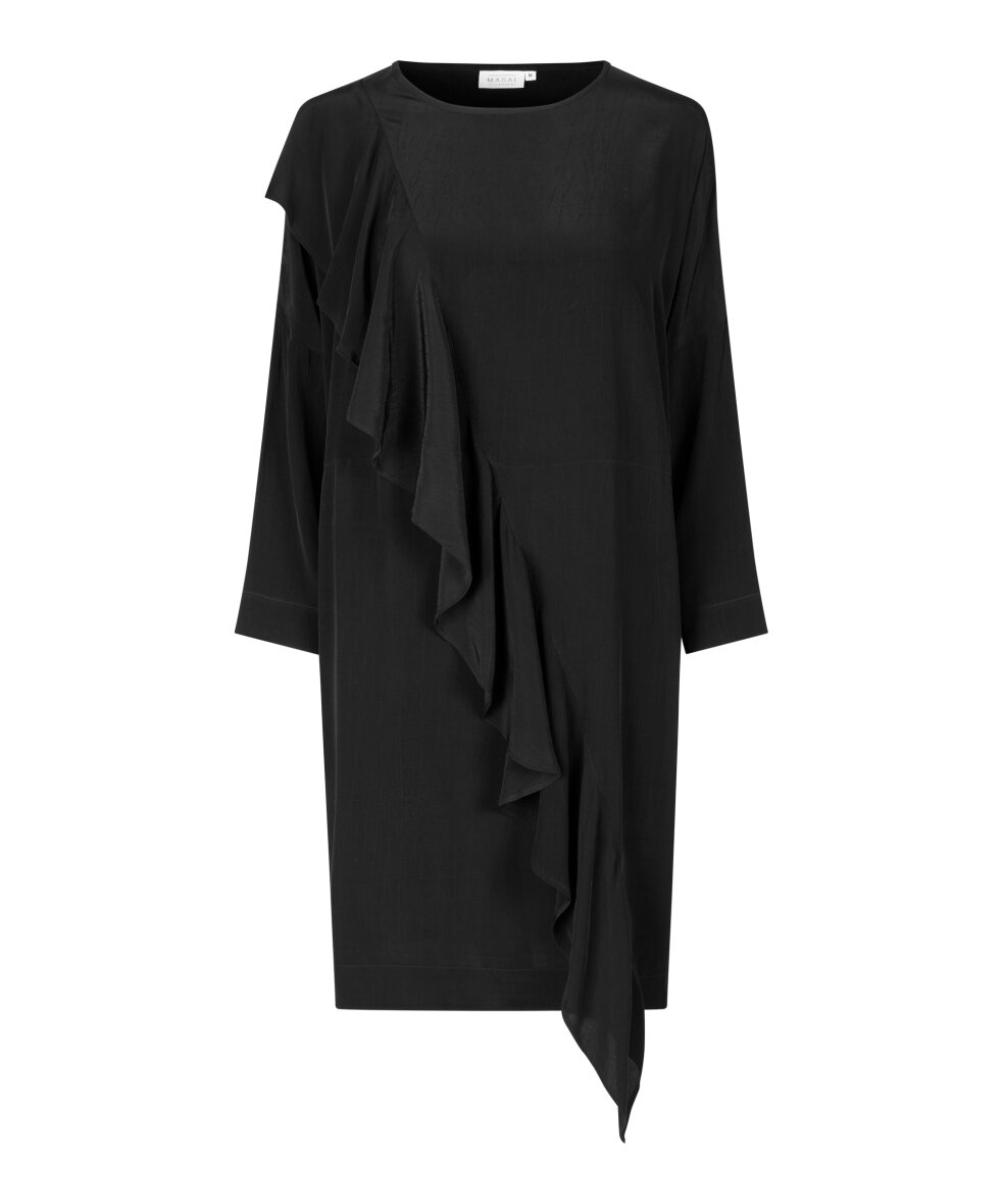 Smuk flæsekjole fra Masai i et løst, afslappet snit. Rund hals og 3/4 lange ærmer. Dekorativ flæse der går op over den ene skulder. Max 5% krymp.
