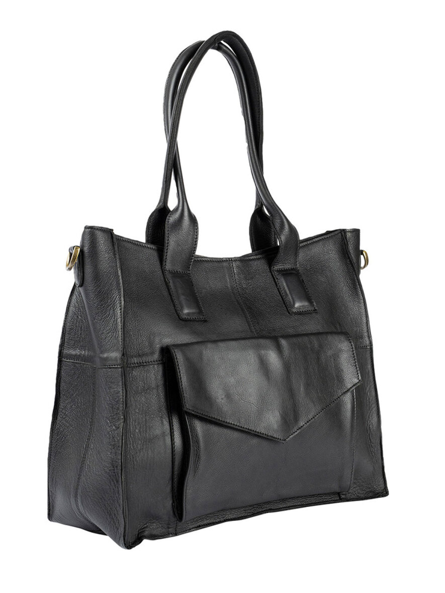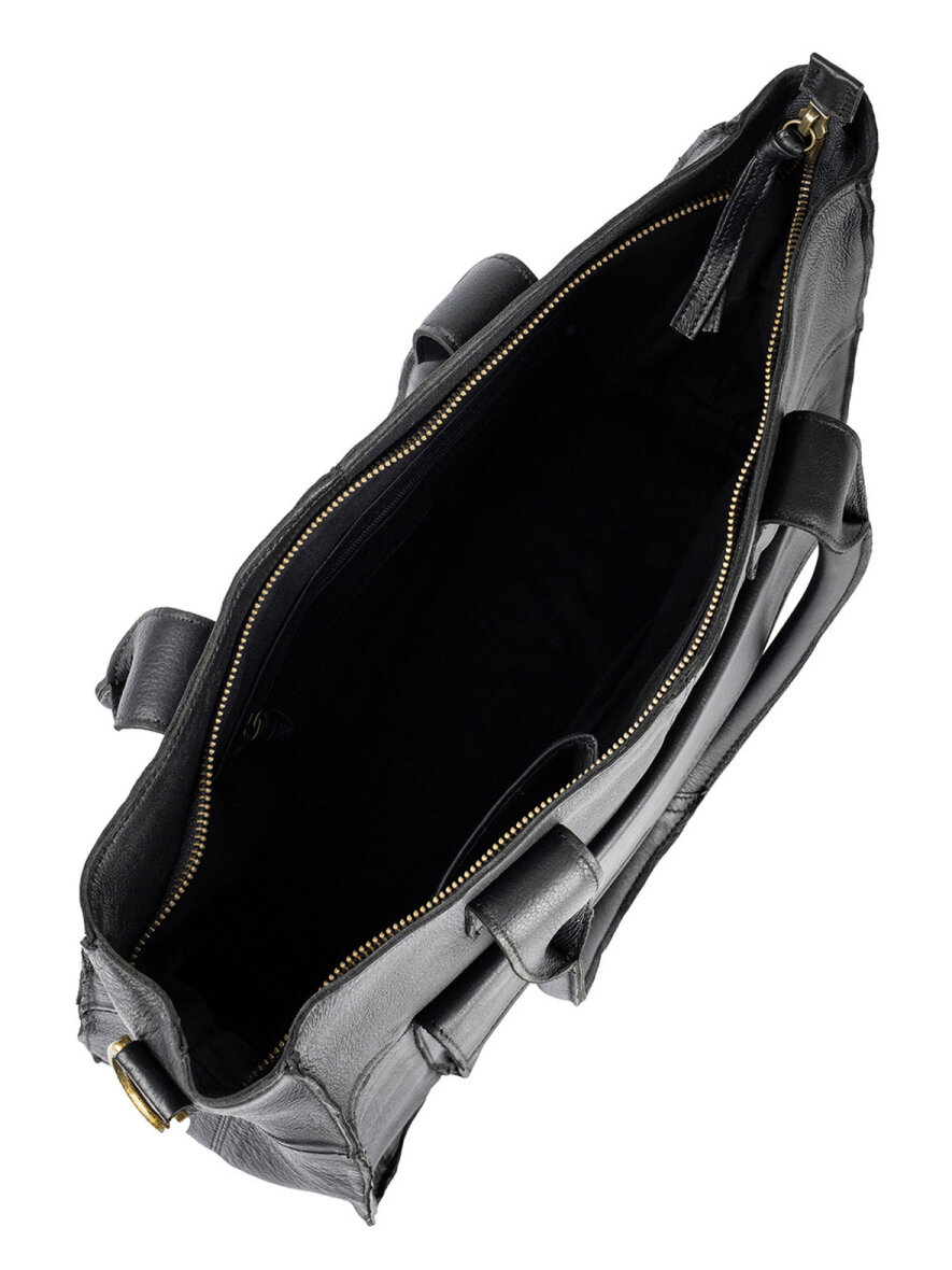 Flot shopper fra Re:Designed med klaplomme i konvolutform med magnetisk tryklås foran. Tasken lukkes med lynlås til et rummeligt hovedrum og to inderlommer og en lynlåslomme. Aftagelig justérbar skulderrem og håndtag drop.