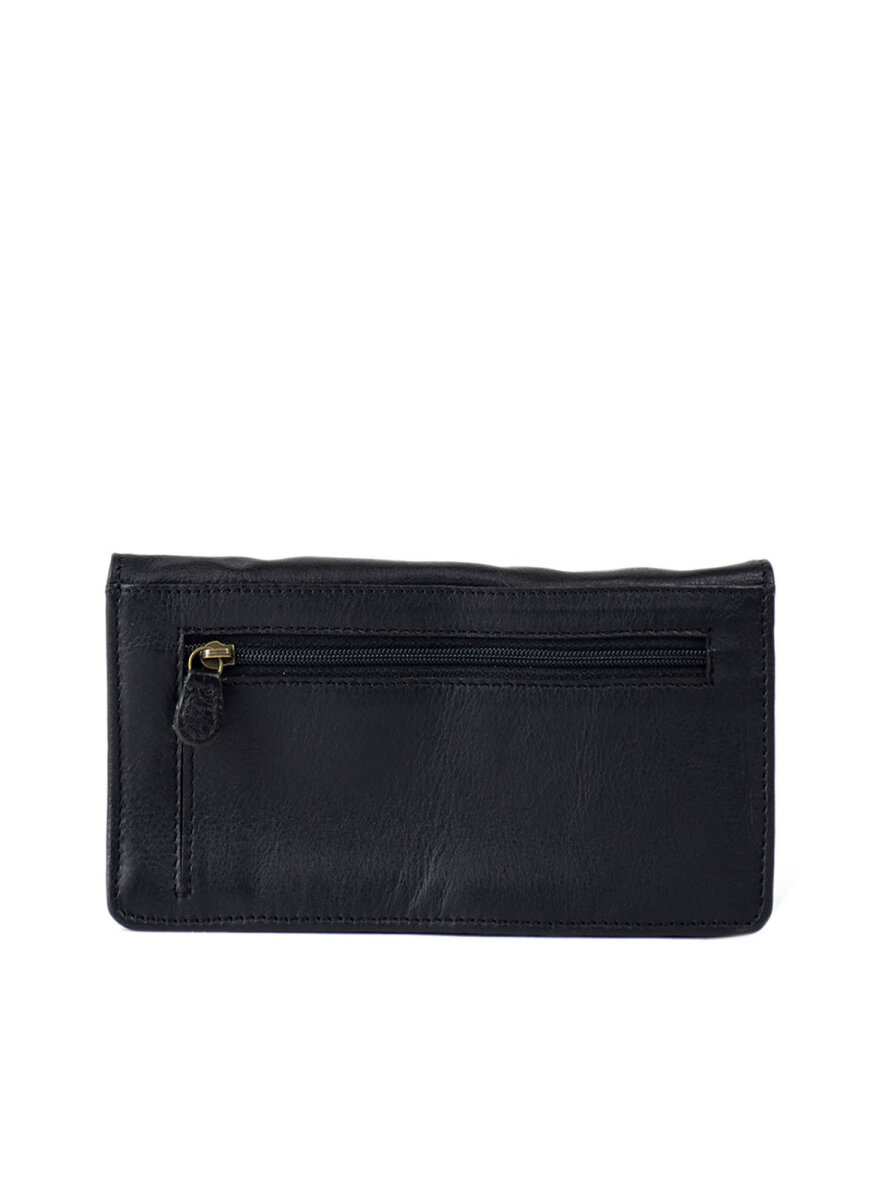 Super flot læder pung fra Re:Designed med flap - lukkes med guldtonet twist-lock lukning. To åbne rum indvendig og et med lynlåsluk. 6 rum til kort. Bagpå et lille rum med lynlås.