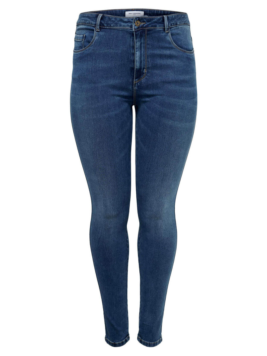 Skinny jeans i en super blød kvalitet fra ONLY Carmakoma. Bukserne har høj talje og lukkes med knap og lynlås. 5-lommer og bæltestropper. Masser af stretch.