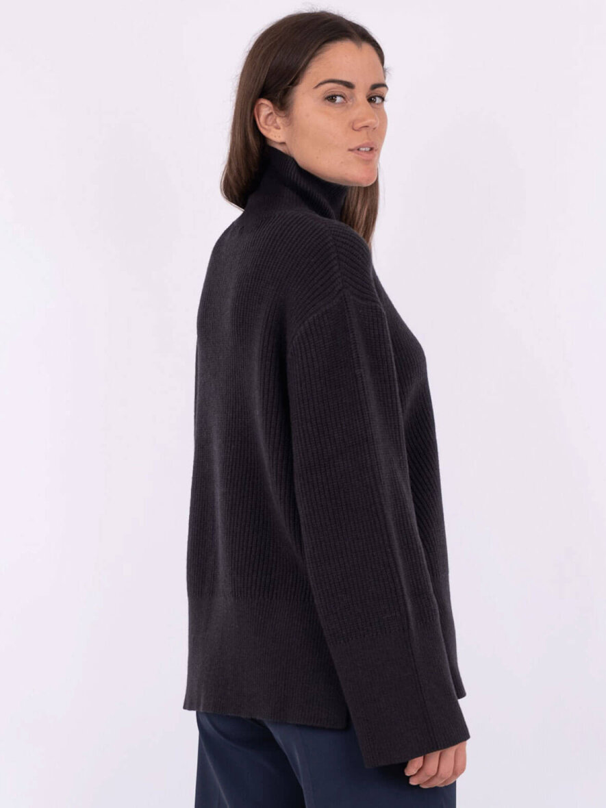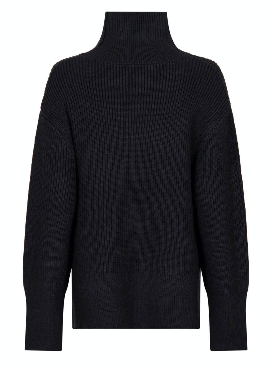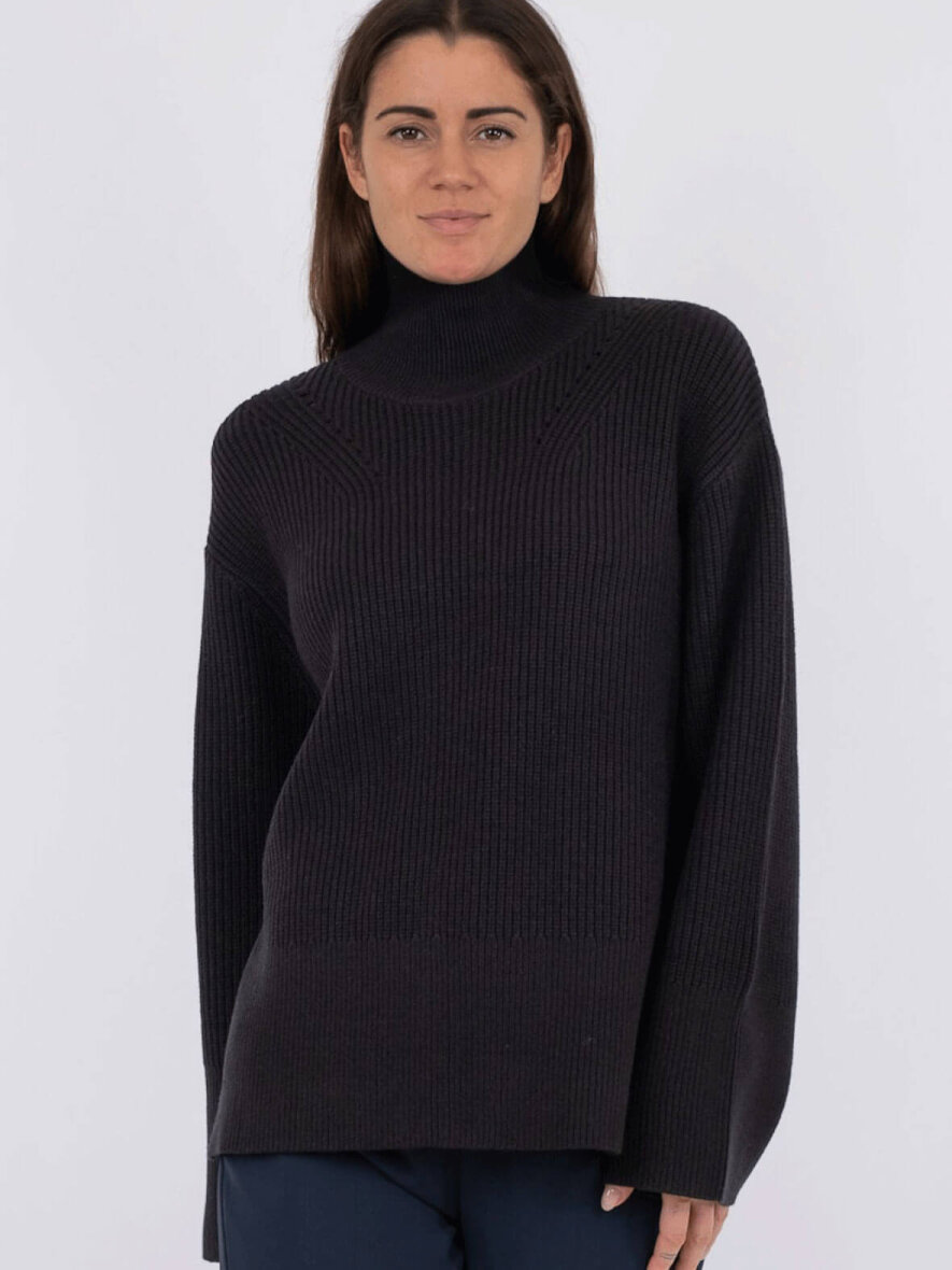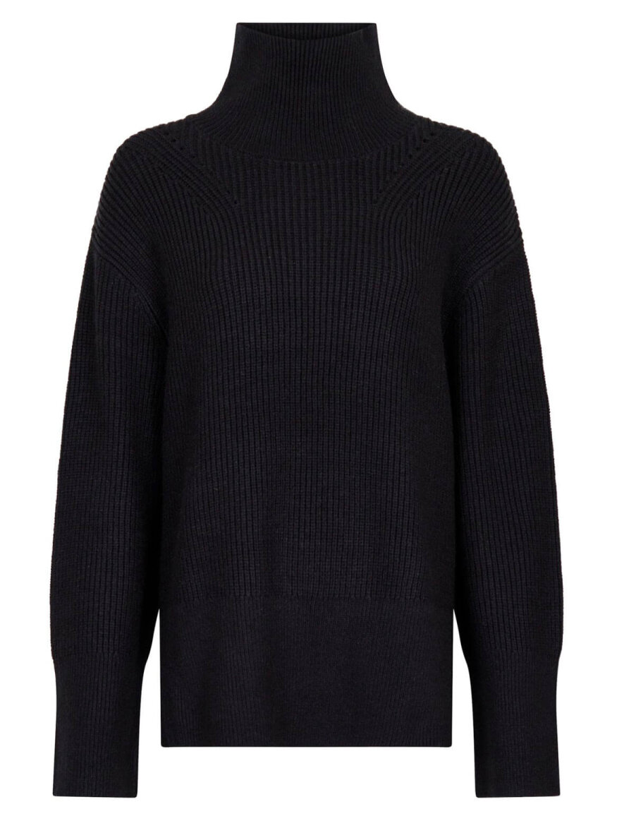 Lækker strik i blød kvalitet fra Neo Noir med høj hals. Lange brede ærmer og slidser i siden. Løs pasform.