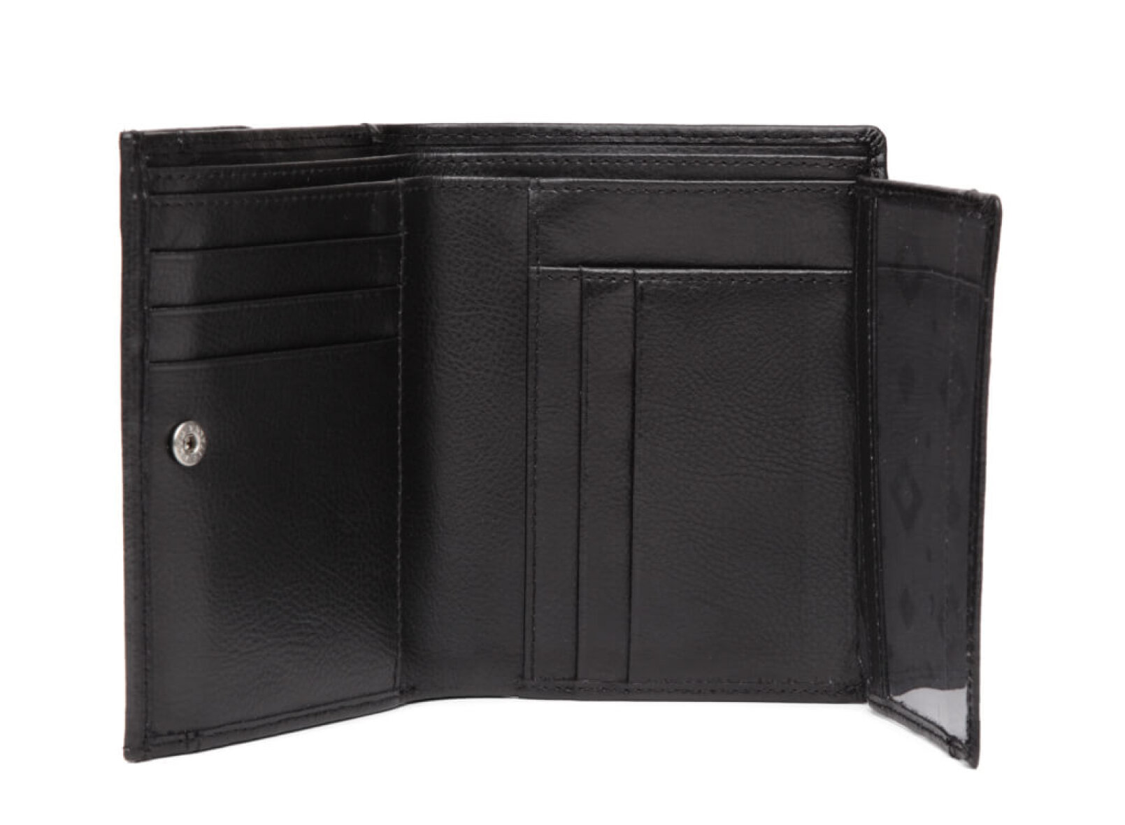 Pungen har mange lommer og rum indeni til både sedler, kort og mønter. Pungen har RFID-beskyttelse