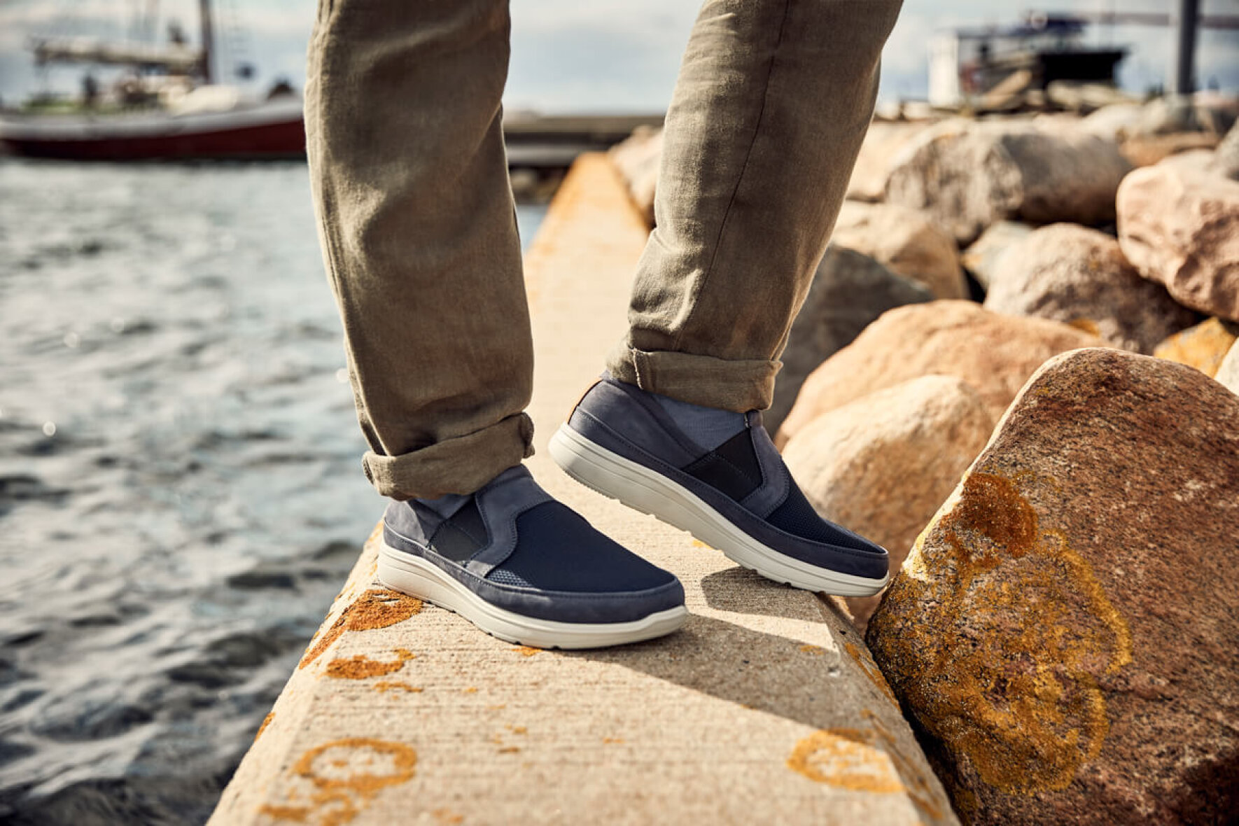 Klassisk herre loafer i en flot mørkeblå farve fra New Feet. Skoen er lavet i en kombination af skind og mesh, som giver skoen en god åndbarhed. Skoen er med elastik paneler, så man nemt kan få skoen af og på.
