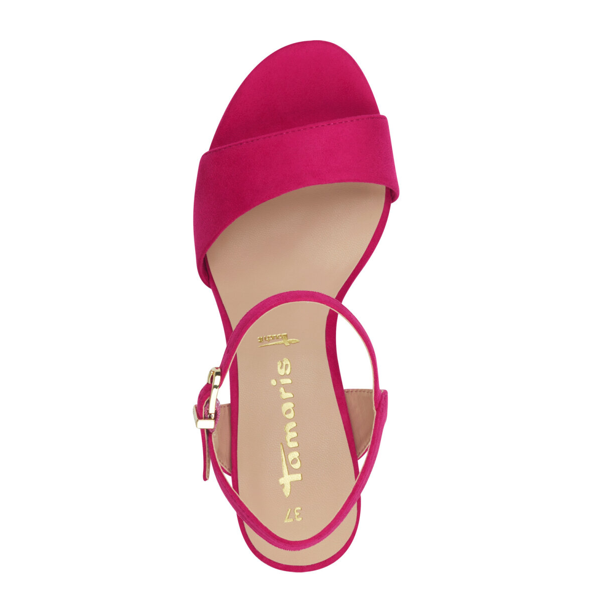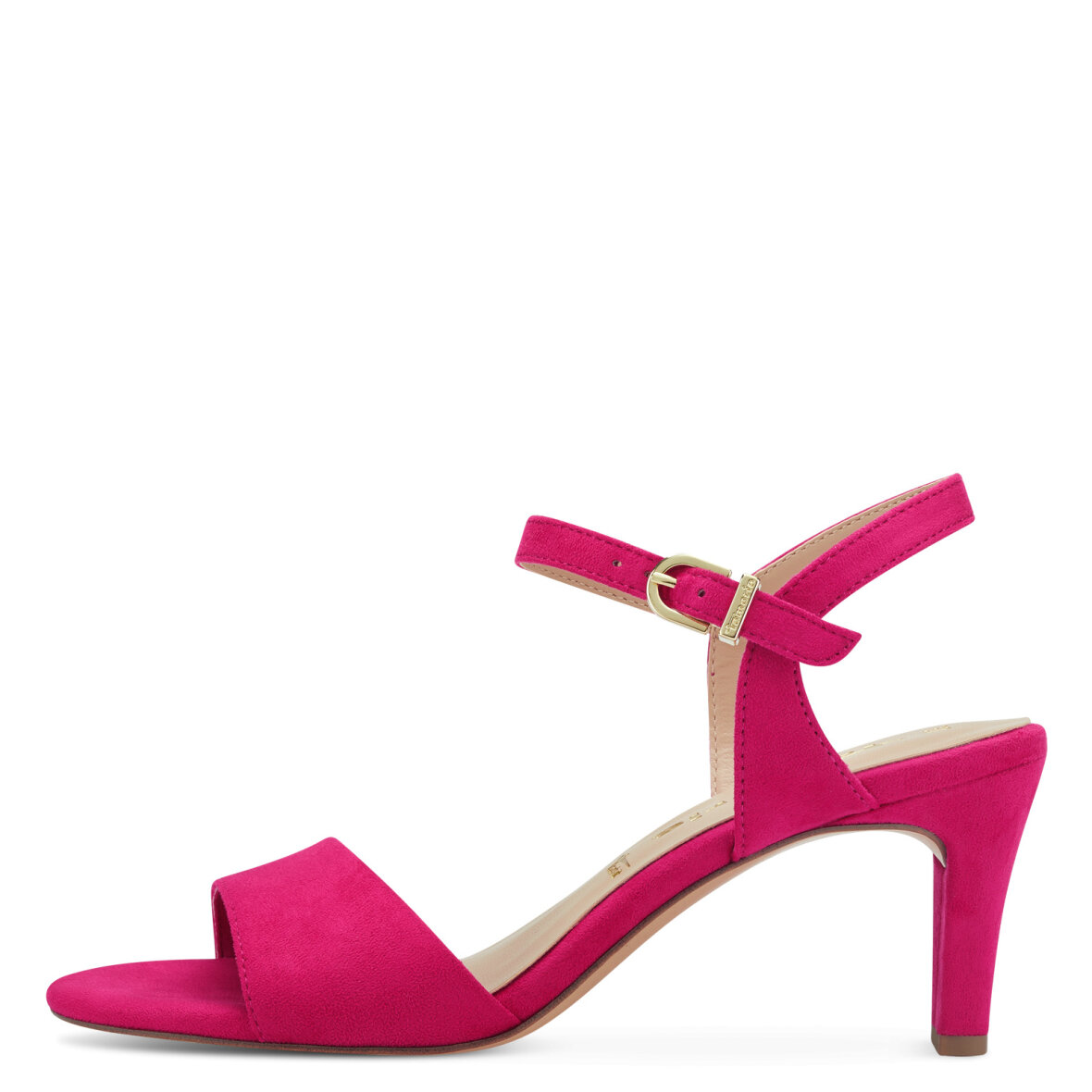 Rigtig flot Tamaris sandal i en mørk lyserød farve, som passer til sæsonens friske farver. Skoen er med bred strop over forfoden og lukkes med en tynd ankelrem. Indlægssålen er en blød touch-it sål, som sikrer dine fødder en god komfort. Sandalen har en hæl på 6.5 cm.