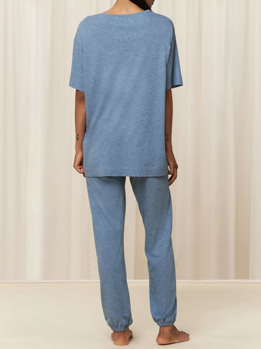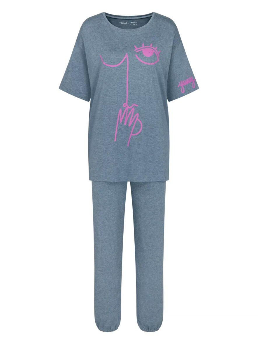 Lækkert blødt py-sæt fra Triumph. Toppen er en lang T-shirt med rund hals, korte ærmer og print foran og på ærmet. Lange bukser med elastik i taljen og ved fødderne.